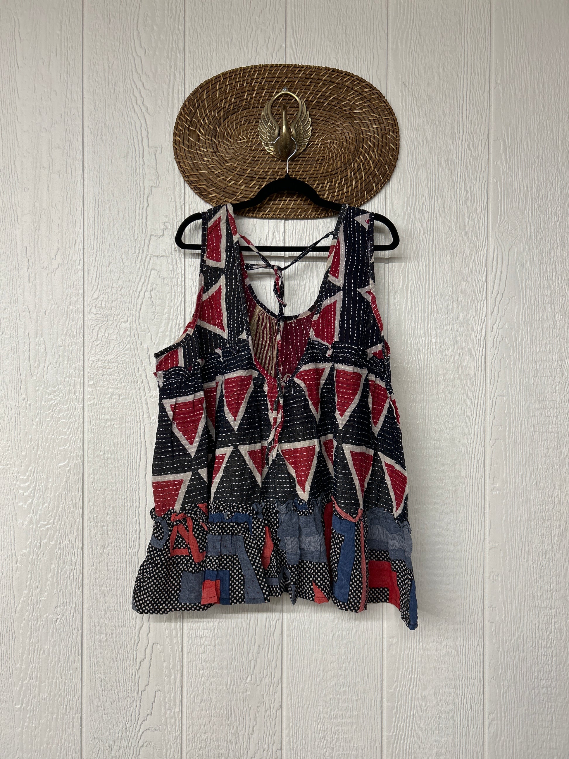Made from a dreamy combo of our ultra lux cotton kantha stitch sari and crepe silk sari, the Mystic Tunic features a tie back on the shoulder to make it fully customizable.