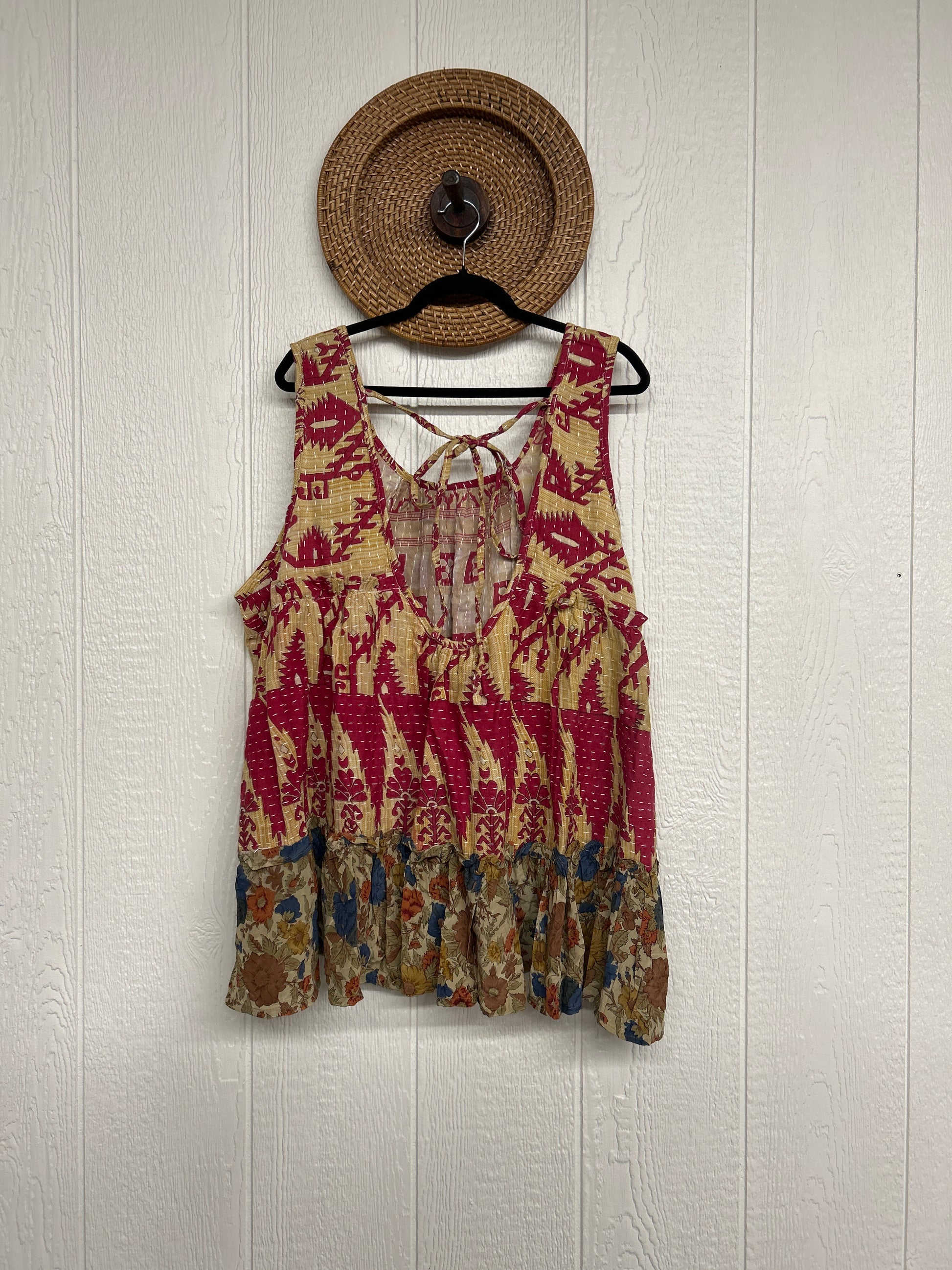 Made from a dreamy combo of our ultra lux cotton kantha stitch sari and crepe silk sari, the Mystic Tunic features a tie back on the shoulder to make it fully customizable.