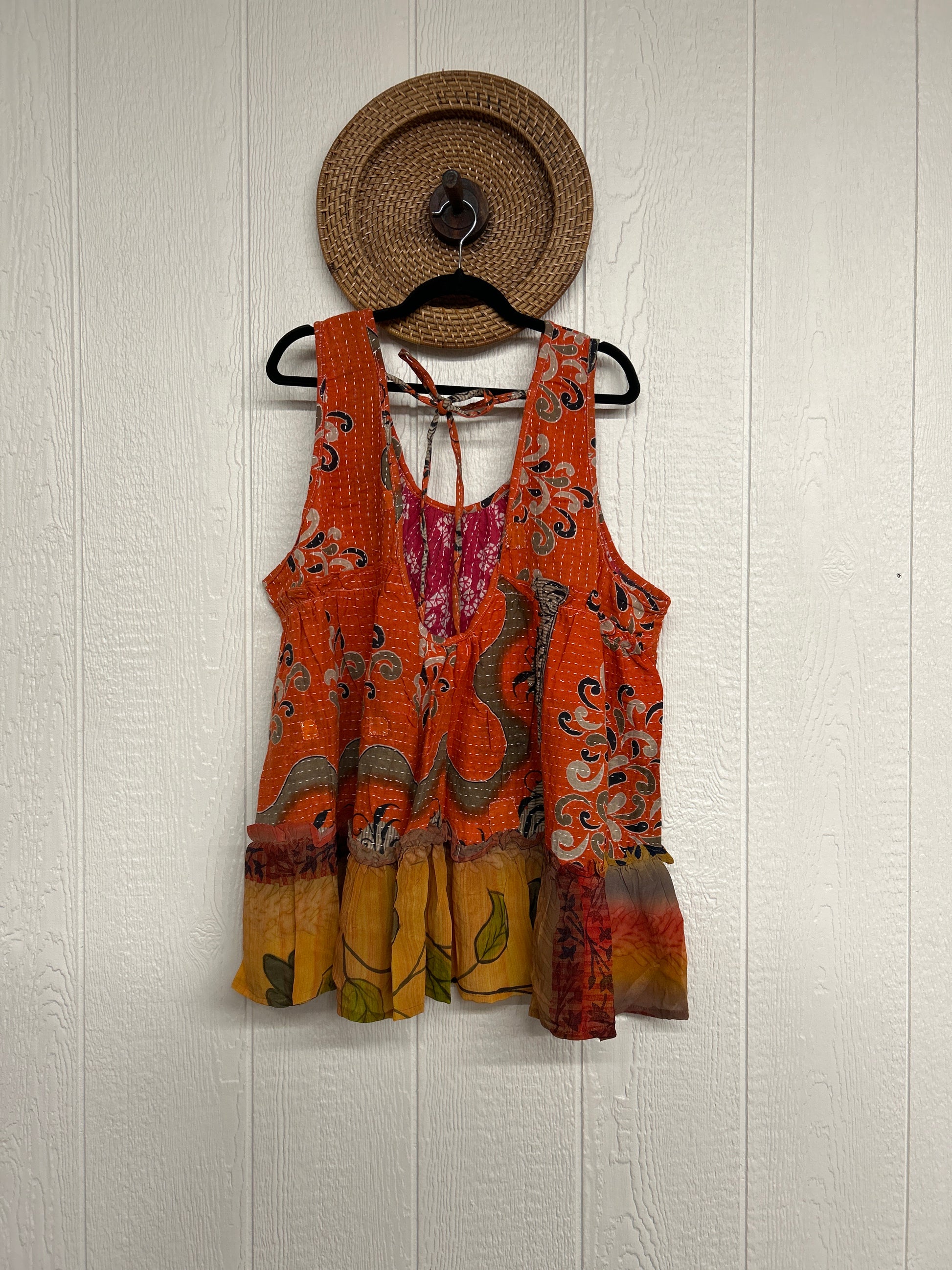 Made from a dreamy combo of our ultra lux cotton kantha stitch sari and crepe silk sari, the Mystic Tunic features a tie back on the shoulder to make it fully customizable.