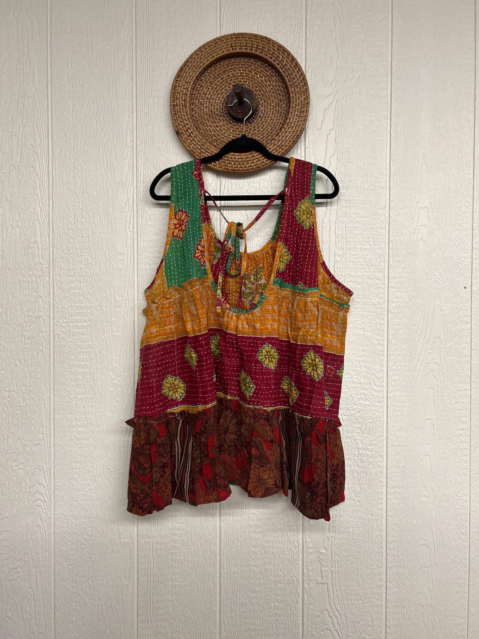 Made from a dreamy combo of our ultra lux cotton kantha stitch sari and crepe silk sari, the Mystic Tunic features a tie back on the shoulder to make it fully customizable.