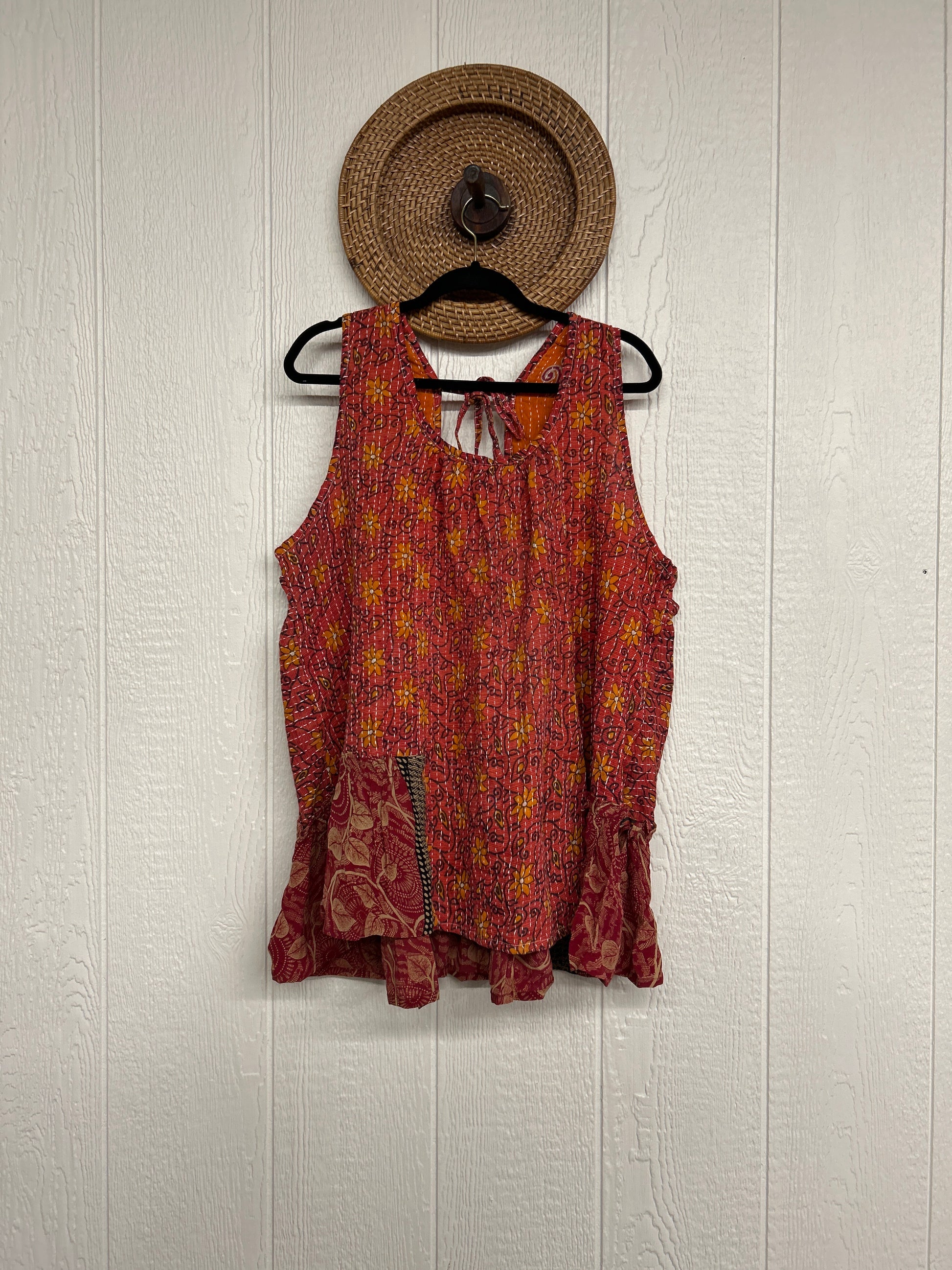 Made from a dreamy combo of our ultra lux cotton kantha stitch sari and crepe silk sari, the Mystic Tunic features a tie back on the shoulder to make it fully customizable.