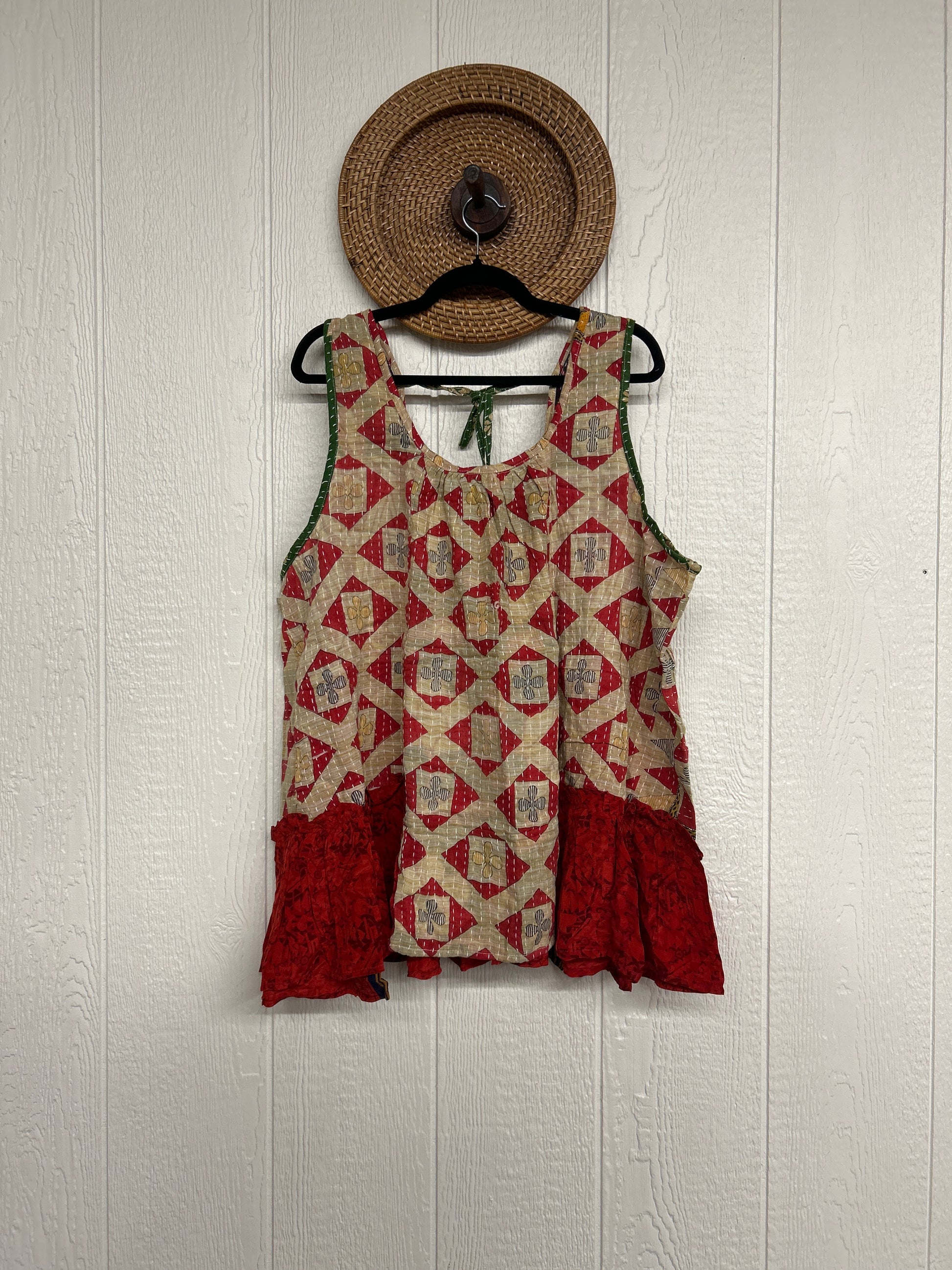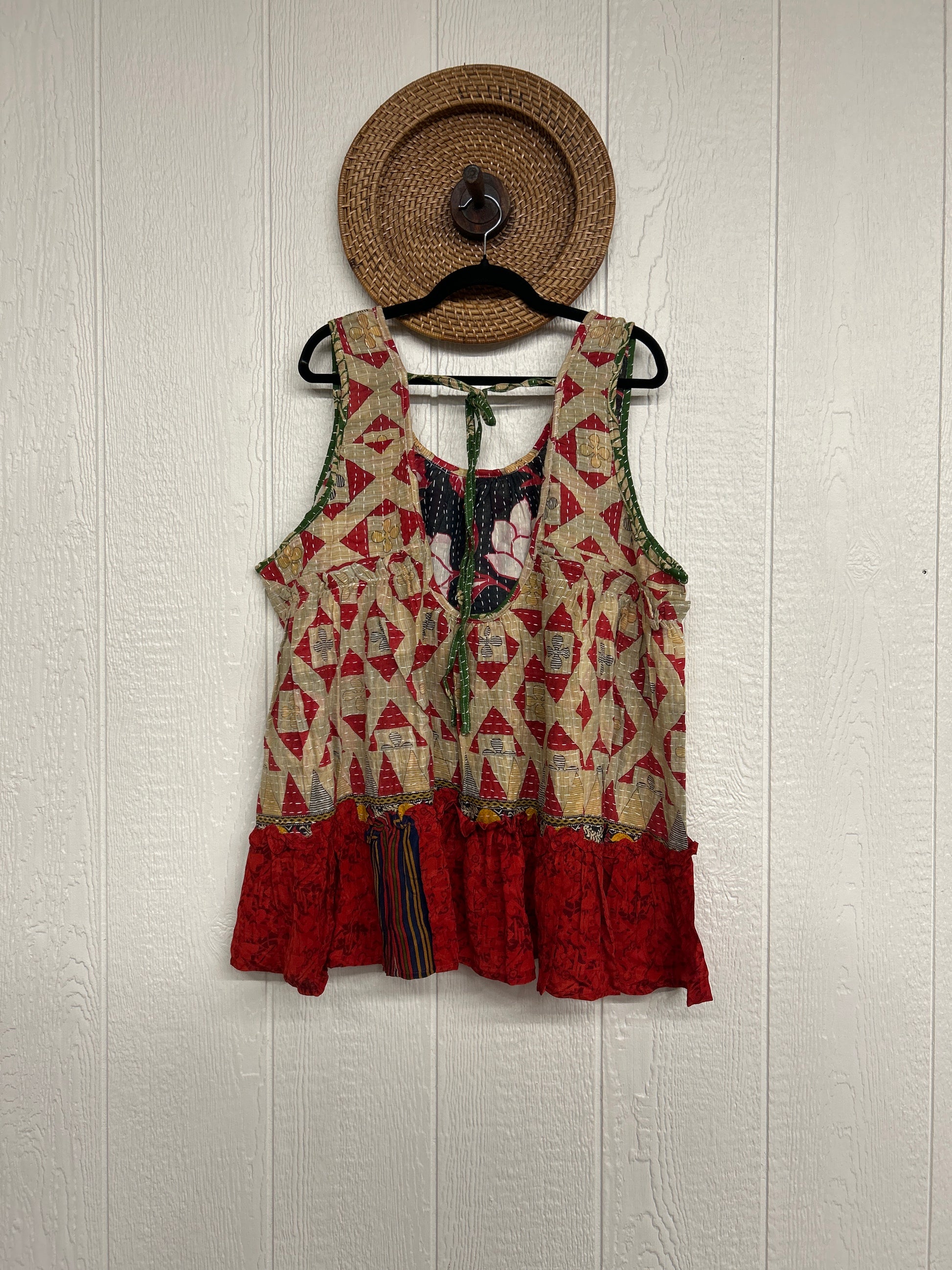 Made from a dreamy combo of our ultra lux cotton kantha stitch sari and crepe silk sari, the Mystic Tunic features a tie back on the shoulder to make it fully customizable.