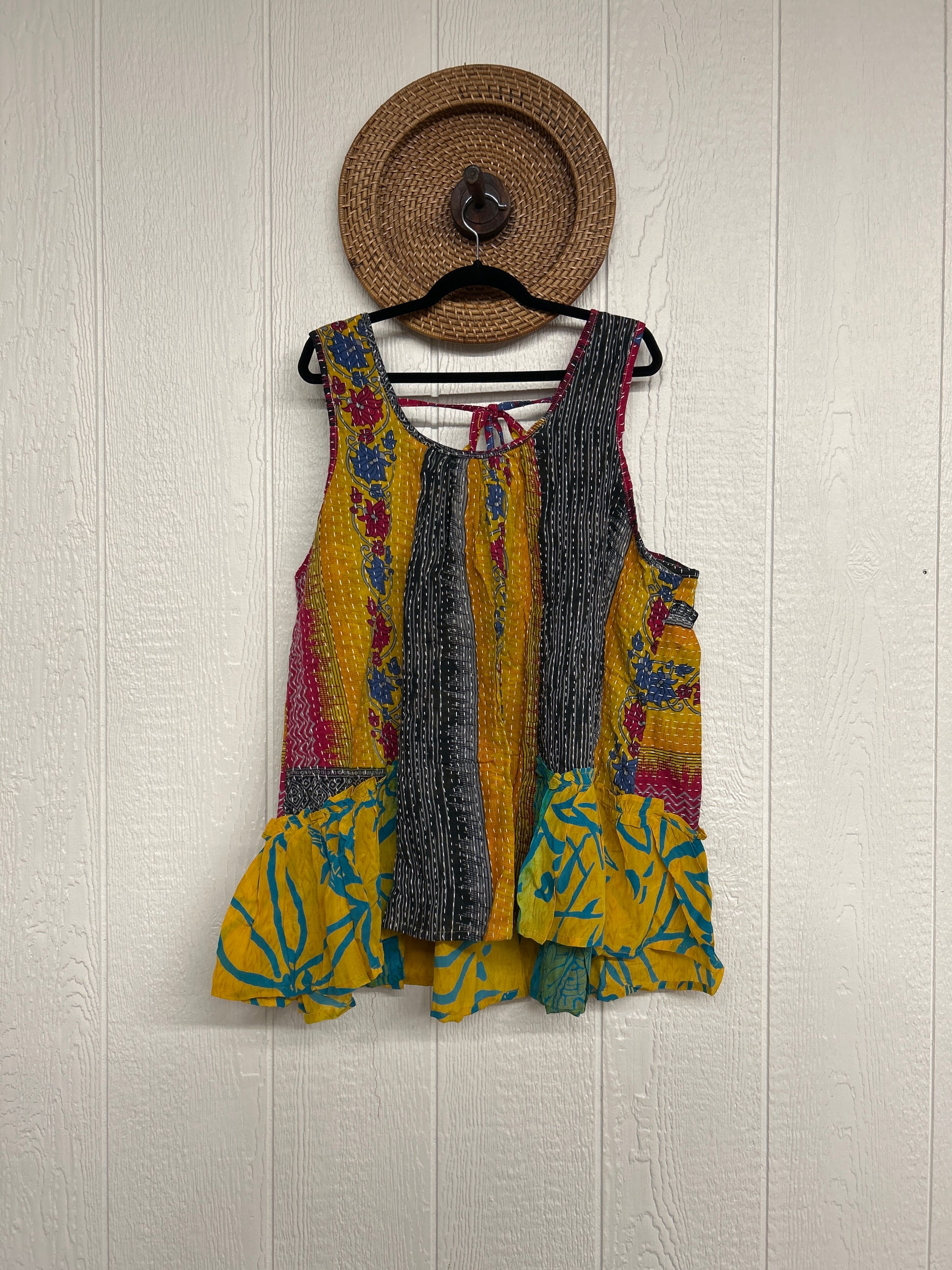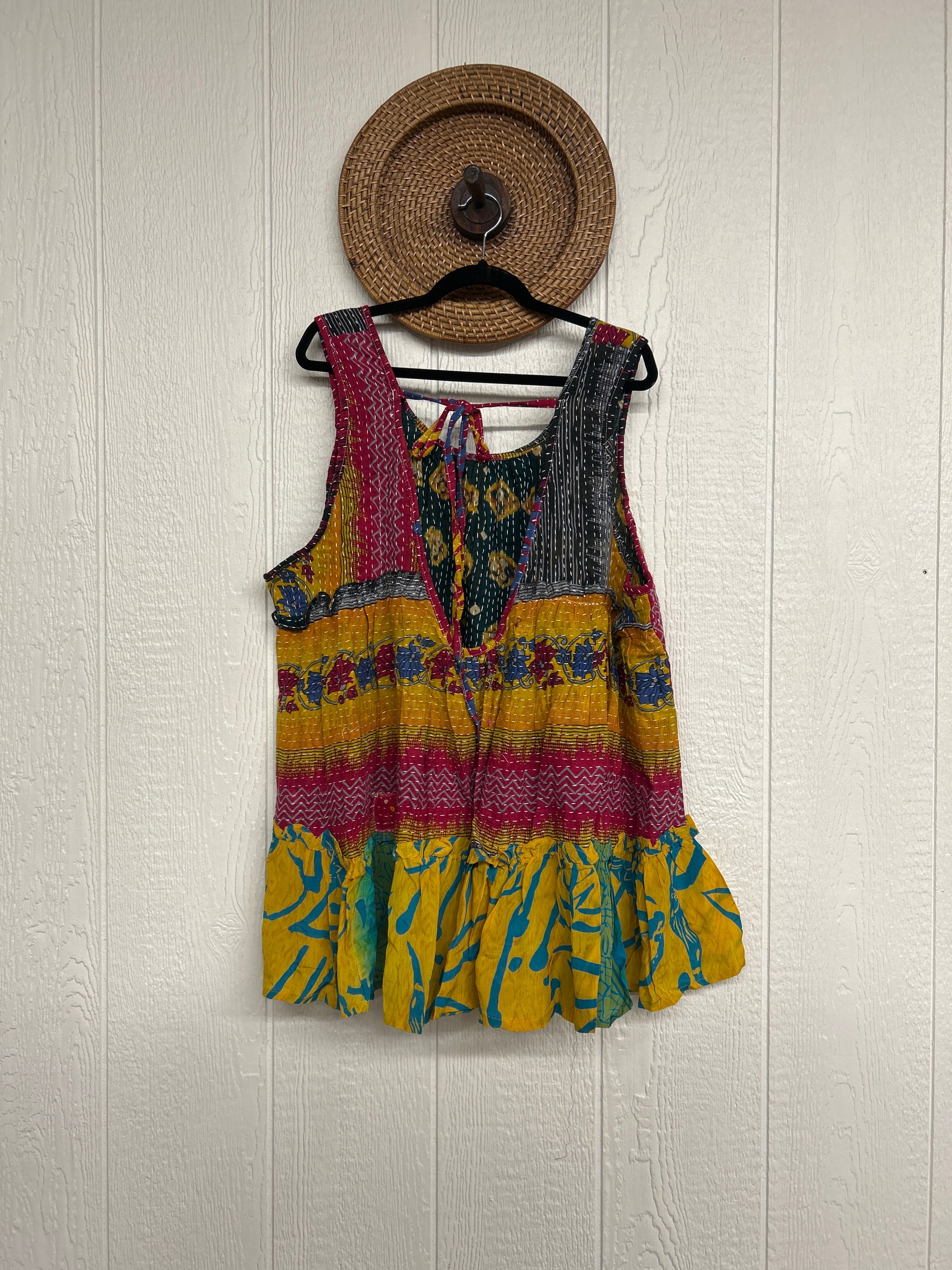 Made from a dreamy combo of our ultra lux cotton kantha stitch sari and crepe silk sari, the Mystic Tunic features a tie back on the shoulder to make it fully customizable.