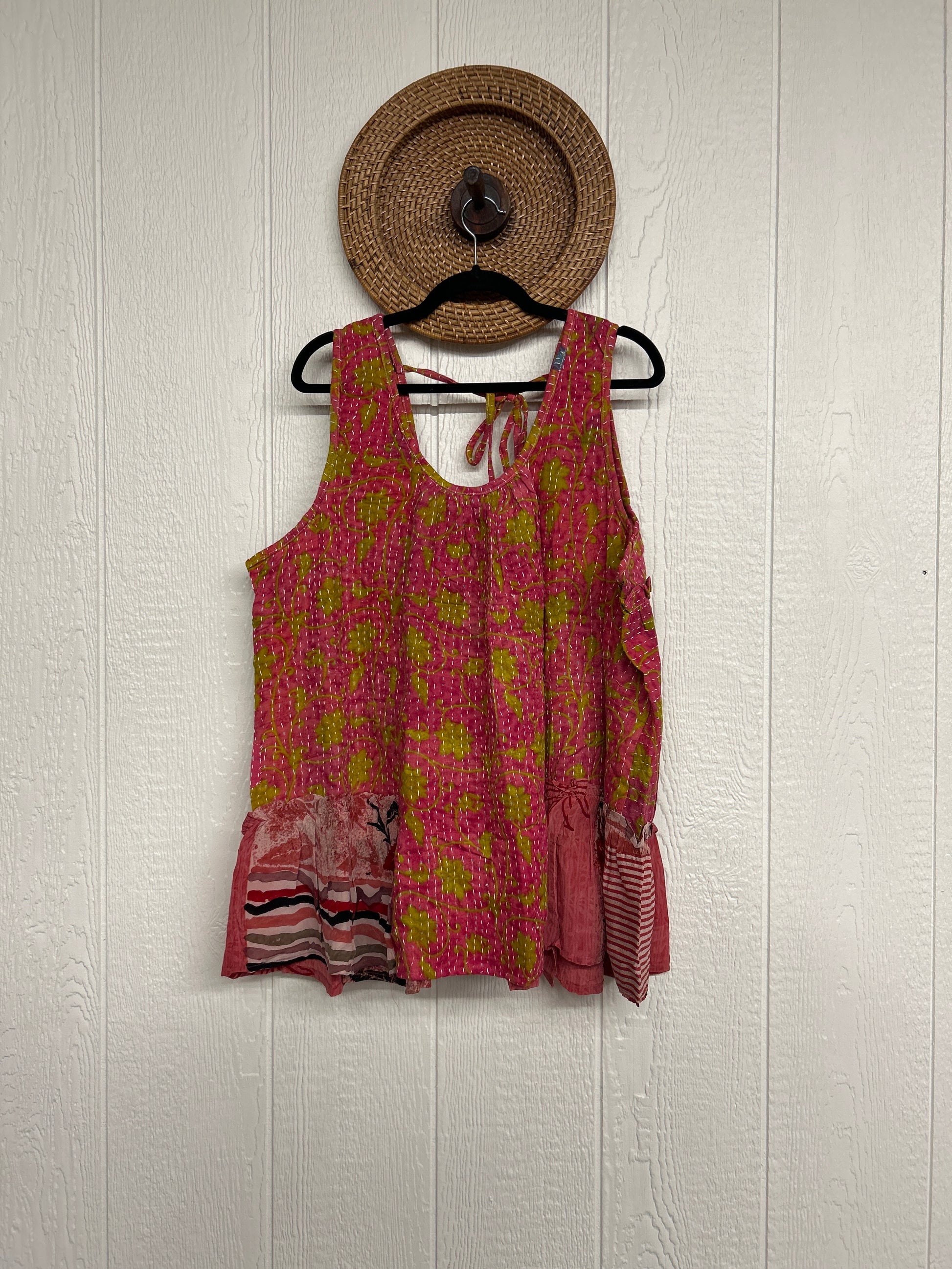 Made from a dreamy combo of our ultra lux cotton kantha stitch sari and crepe silk sari, the Mystic Tunic features a tie back on the shoulder to make it fully customizable.