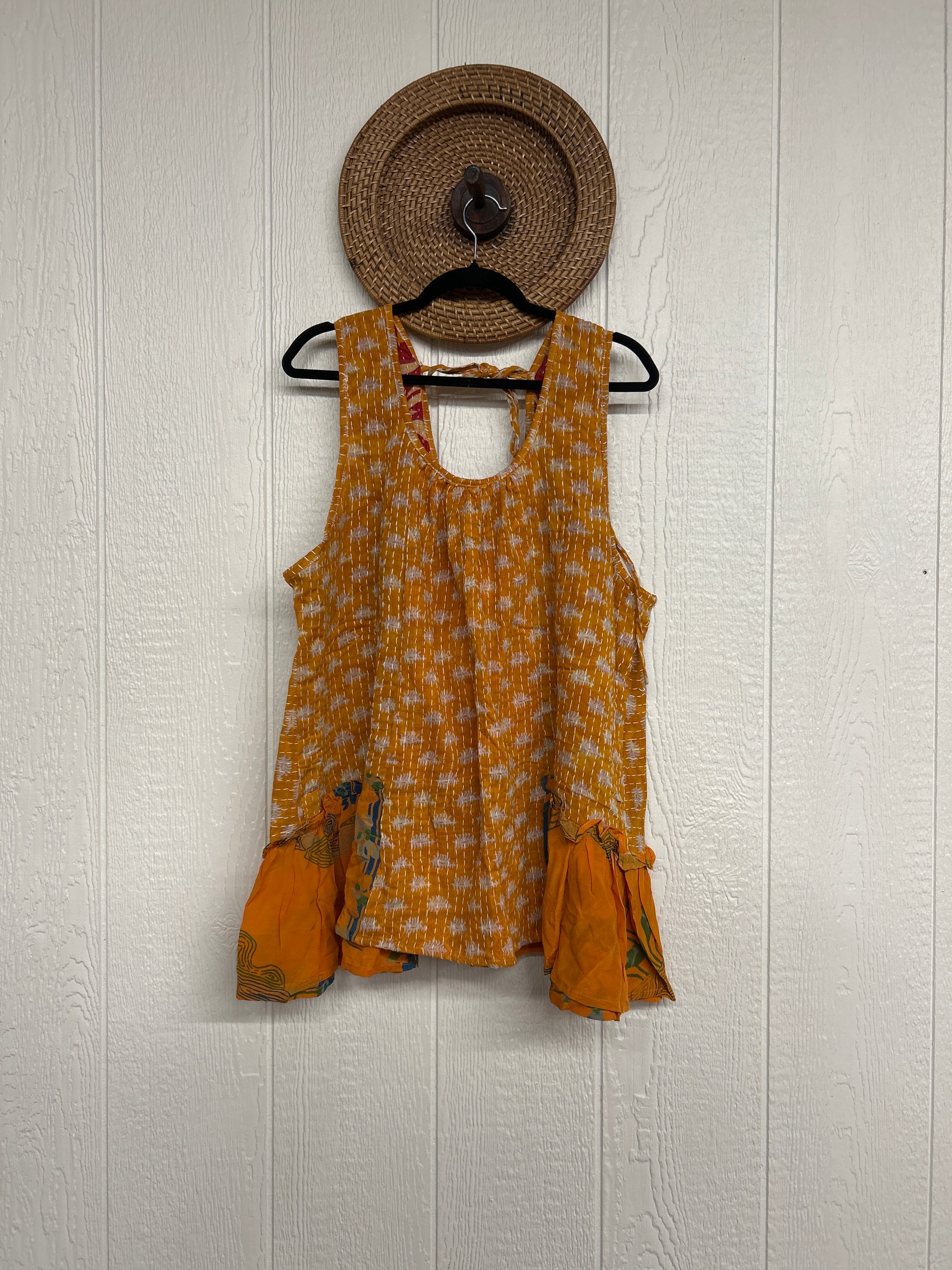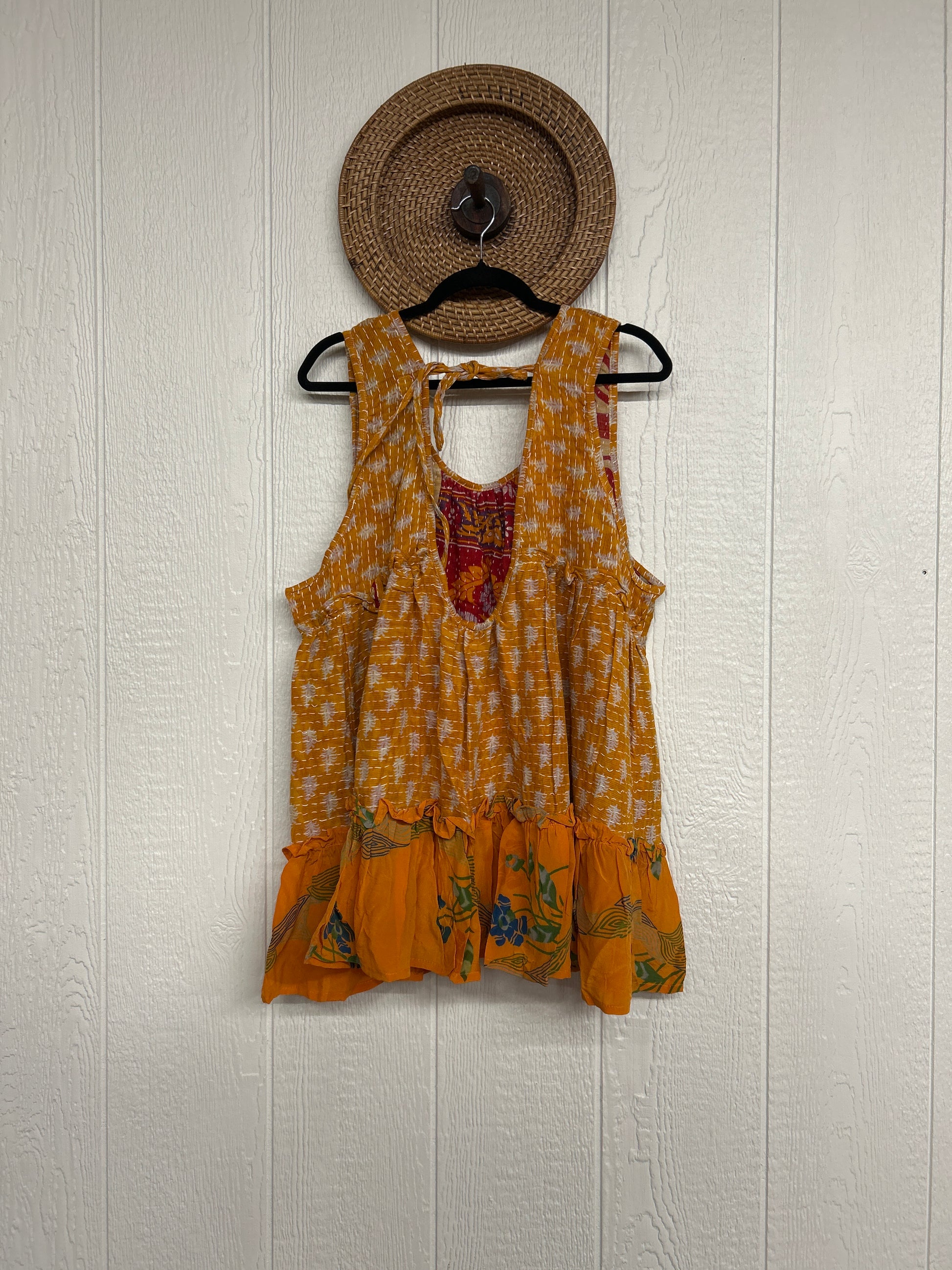 Made from a dreamy combo of our ultra lux cotton kantha stitch sari and crepe silk sari, the Mystic Tunic features a tie back on the shoulder to make it fully customizable.