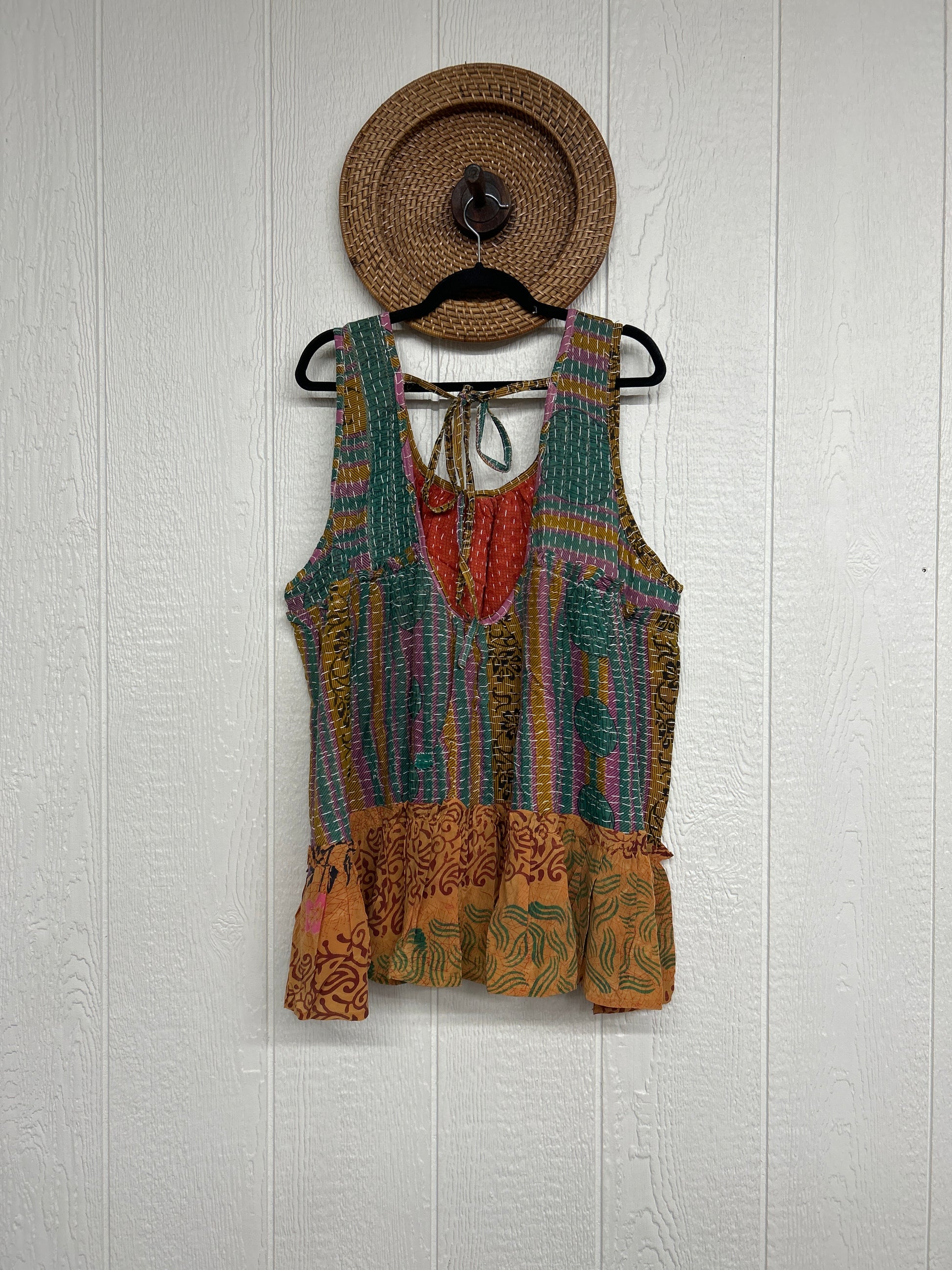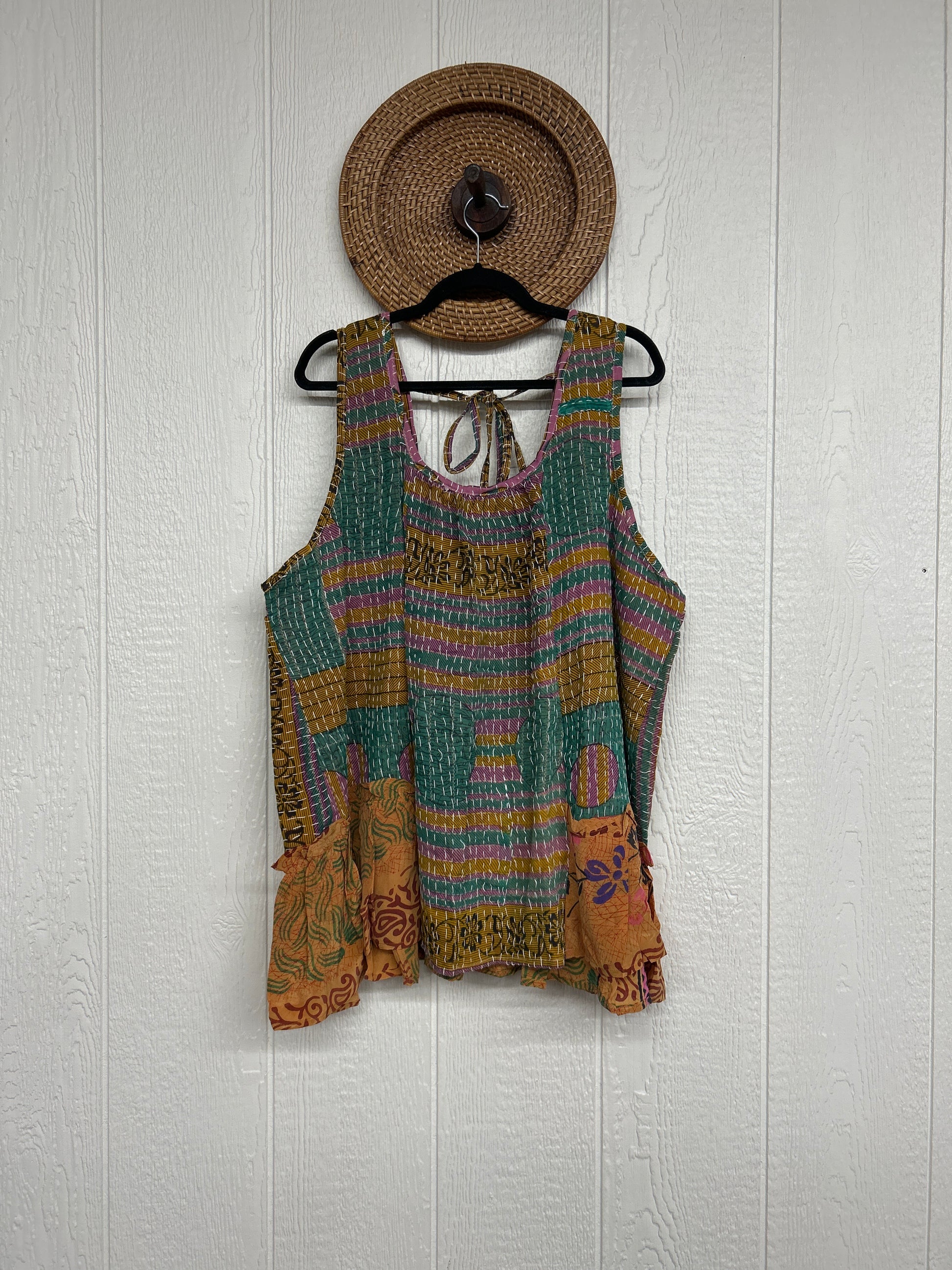 Made from a dreamy combo of our ultra lux cotton kantha stitch sari and crepe silk sari, the Mystic Tunic features a tie back on the shoulder to make it fully customizable.