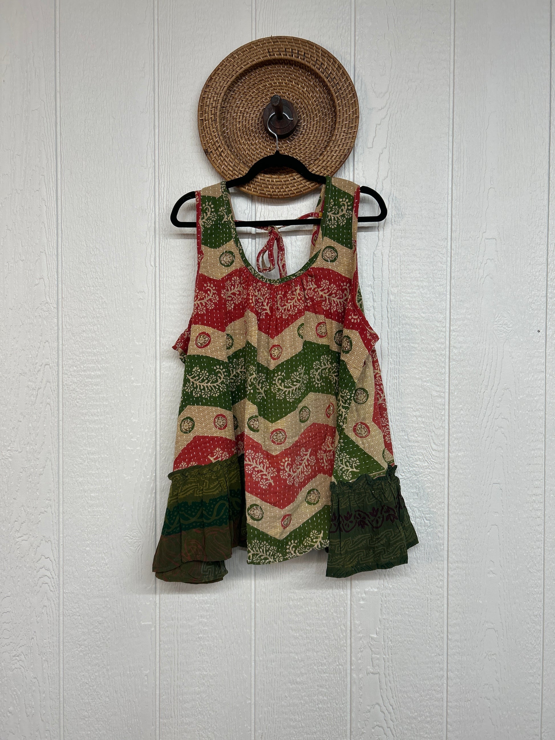 Made from a dreamy combo of our ultra lux cotton kantha stitch sari and crepe silk sari, the Mystic Tunic features a tie back on the shoulder to make it fully customizable.