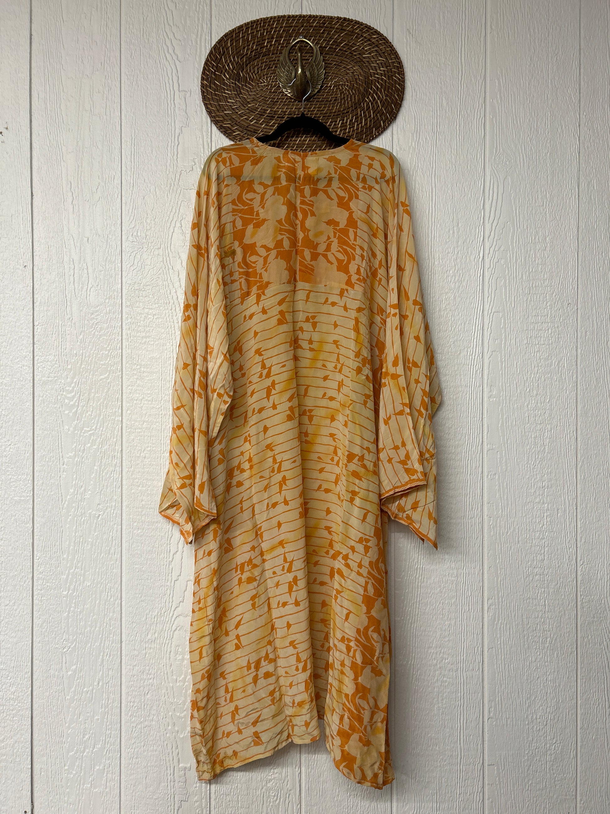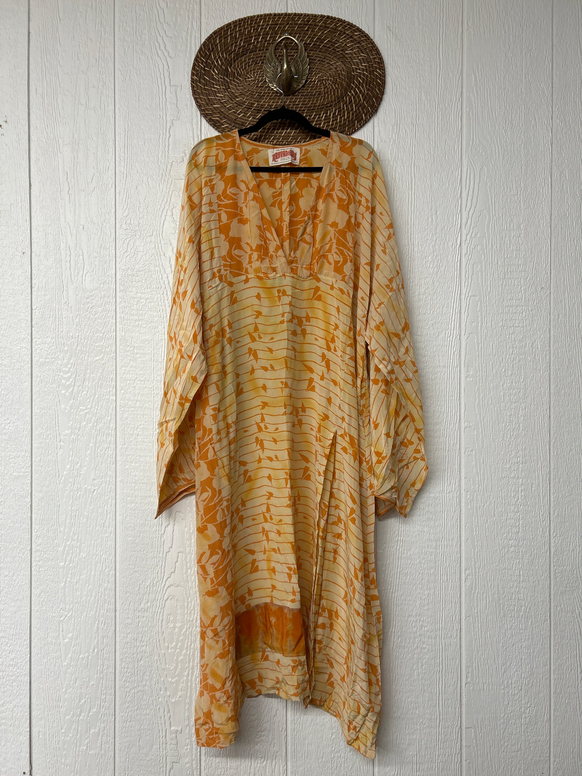 Crafted from our ultra lux vintage crepe sari this floaty dream features wide bell sleeves, deep v neckline, maxi silhouette with side slits for extra dimension.