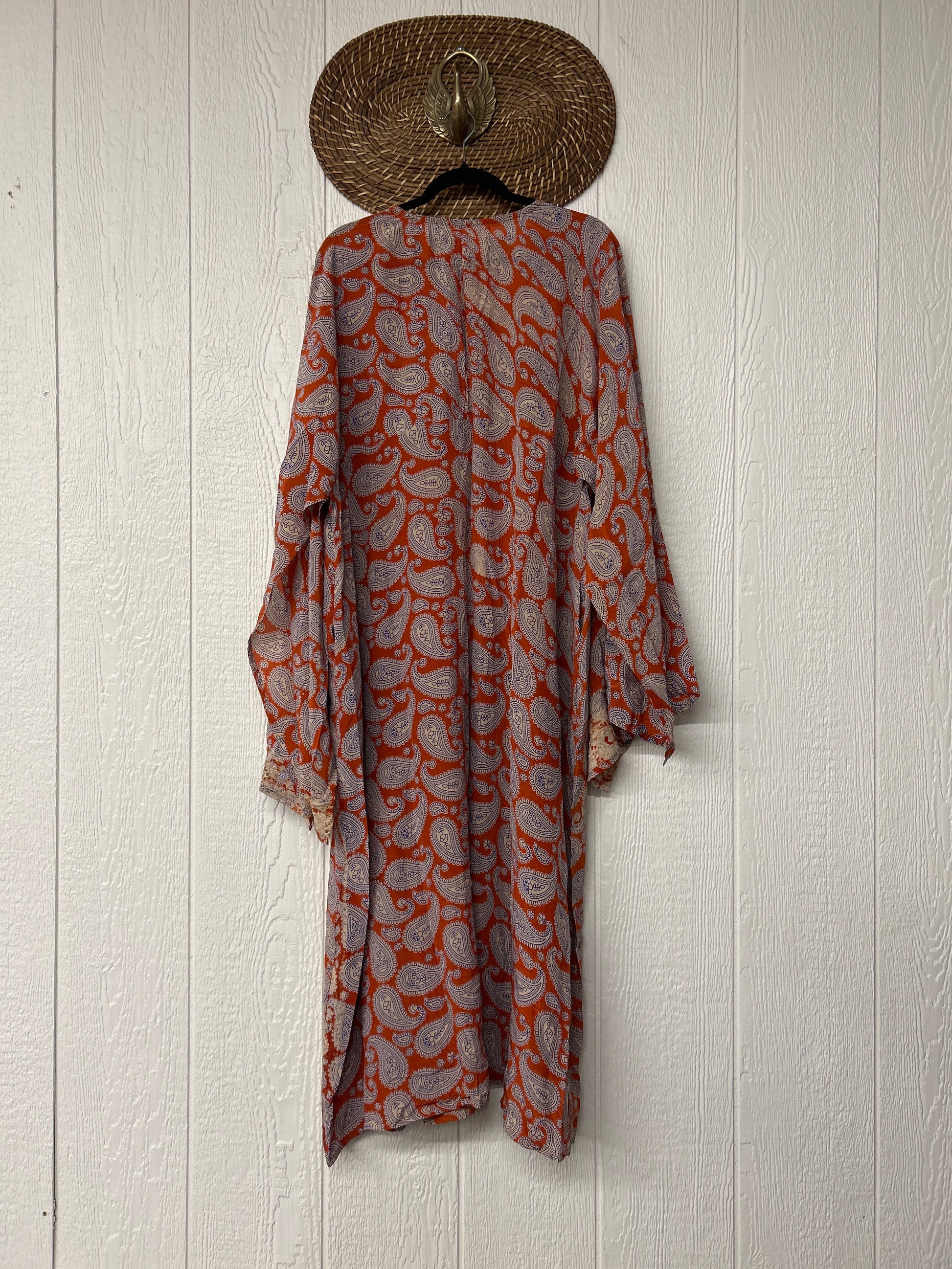 Fabrics may have small threads or holes in the layers. Color inconsistency or small stains may be present. The saris are sewn together and extend the life of each design.