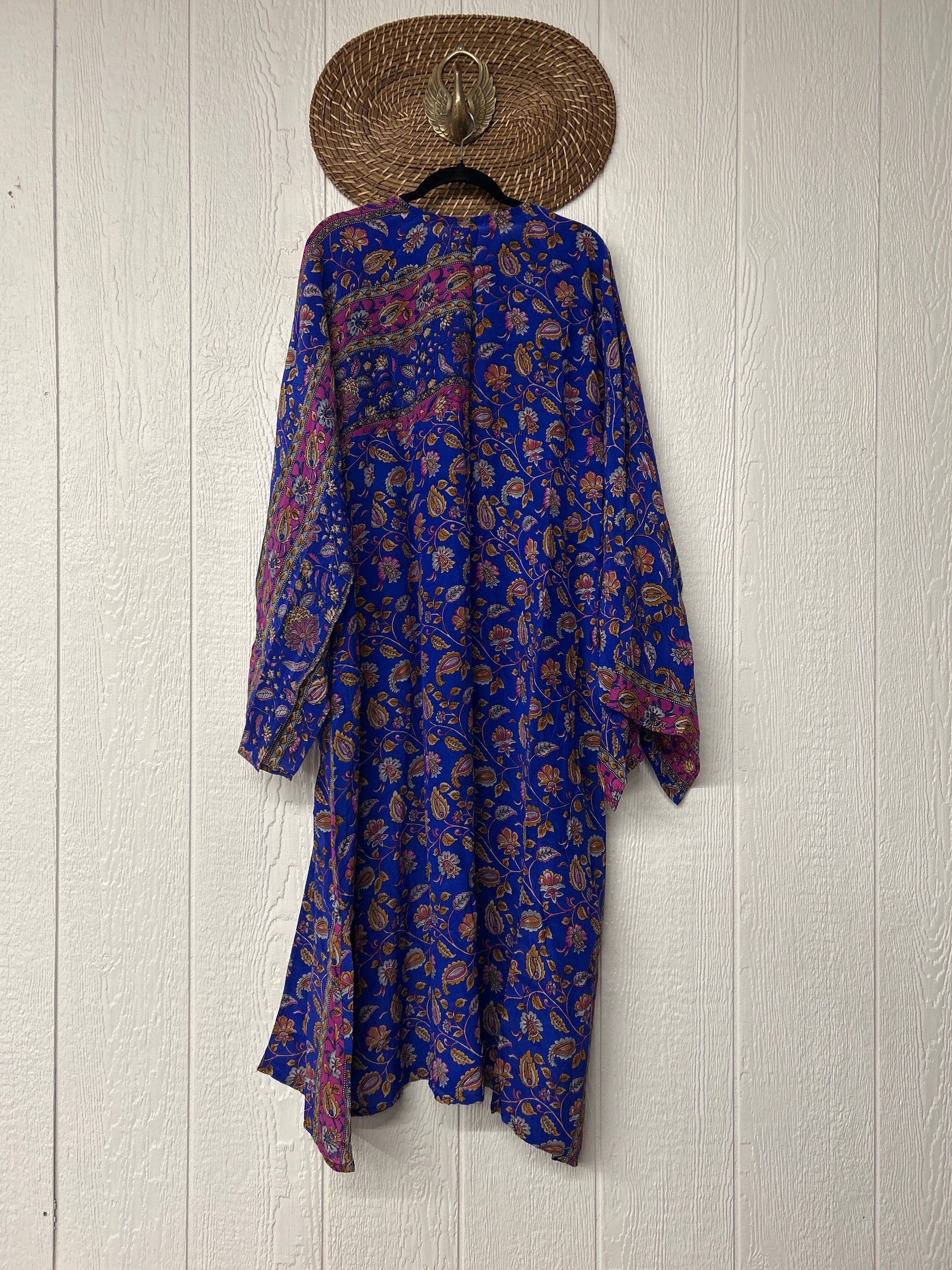 Fabrics may have small threads or holes in the layers. Color inconsistency or small stains may be present. The saris are sewn together and extend the life of each design.