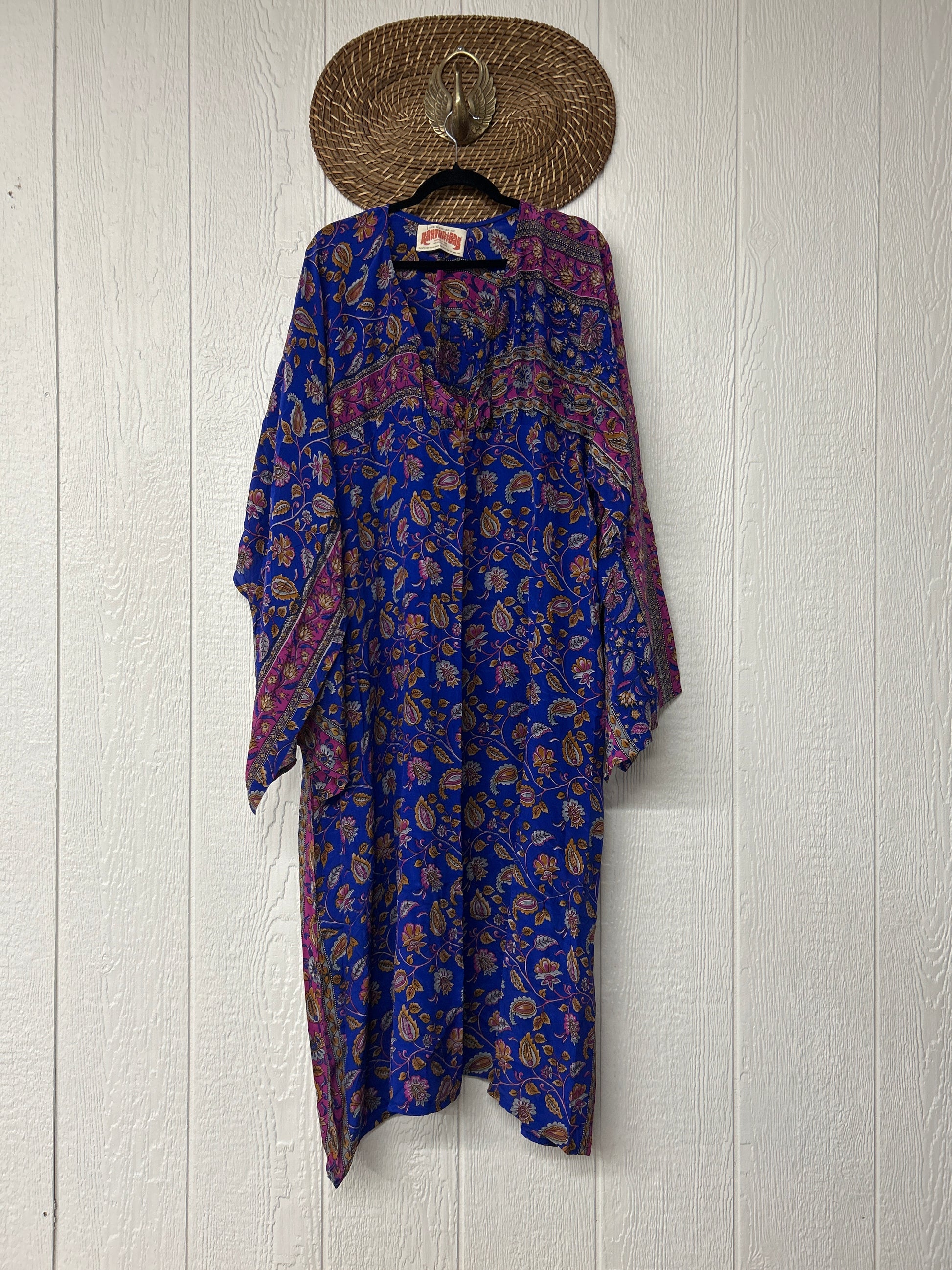 Crafted from our ultra lux vintage crepe sari this floaty dream features wide bell sleeves, deep v neckline, maxi silhouette with side slits for extra dimension.