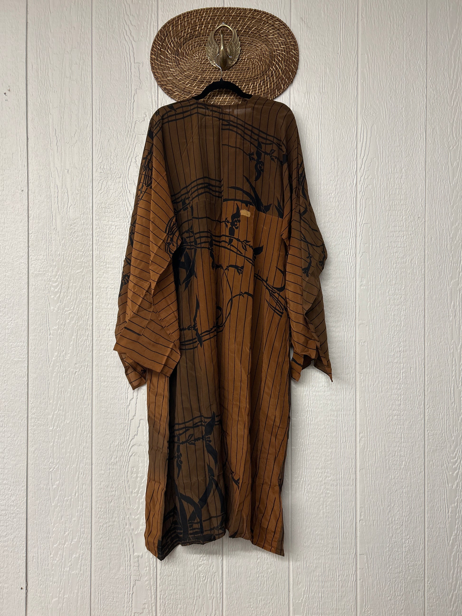 Fabrics may have small threads or holes in the layers. Color inconsistency or small stains may be present. The saris are sewn together and extend the life of each design.