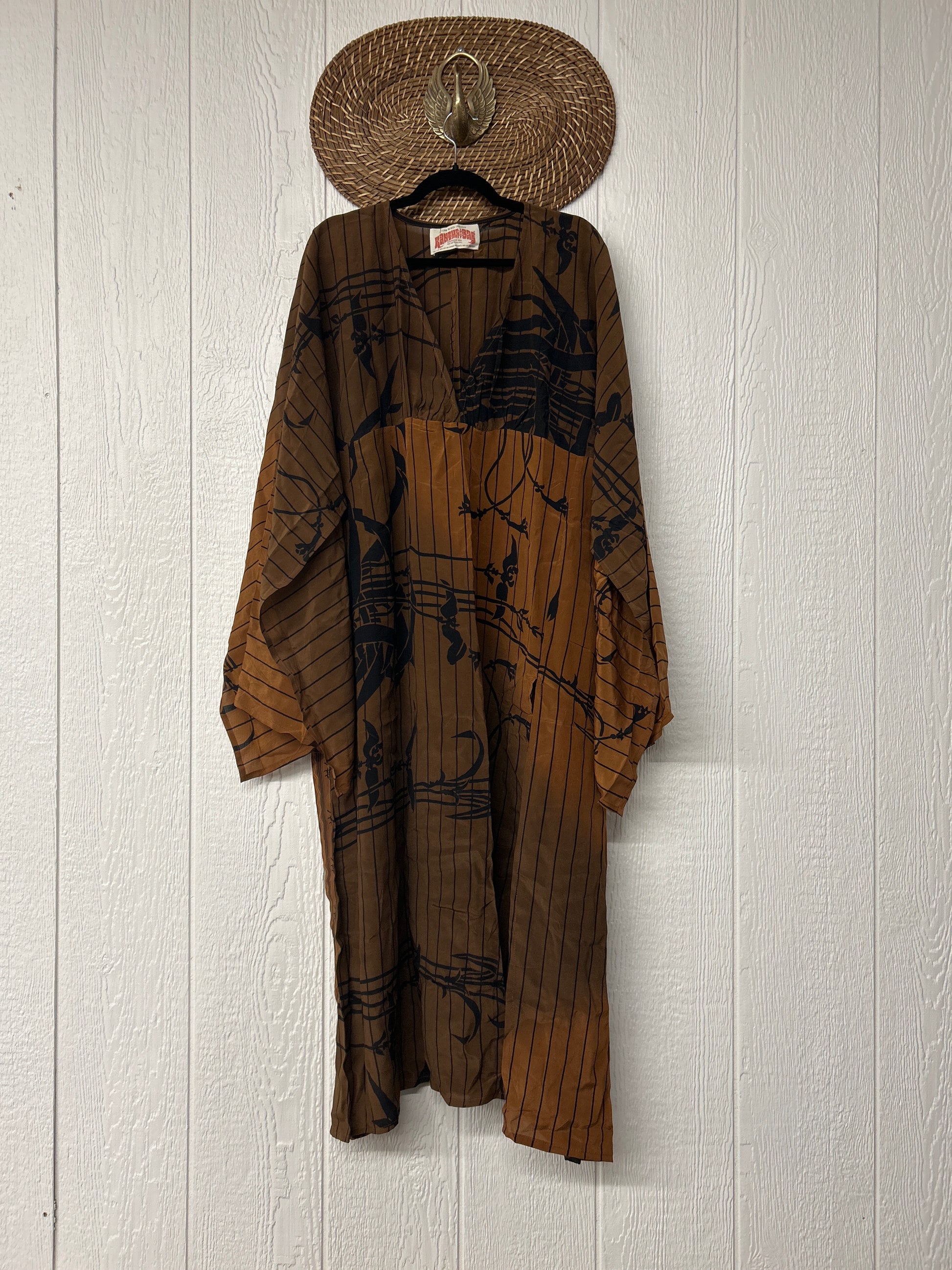 Crafted from our ultra lux vintage crepe sari this floaty dream features wide bell sleeves, deep v neckline, maxi silhouette with side slits for extra dimension.