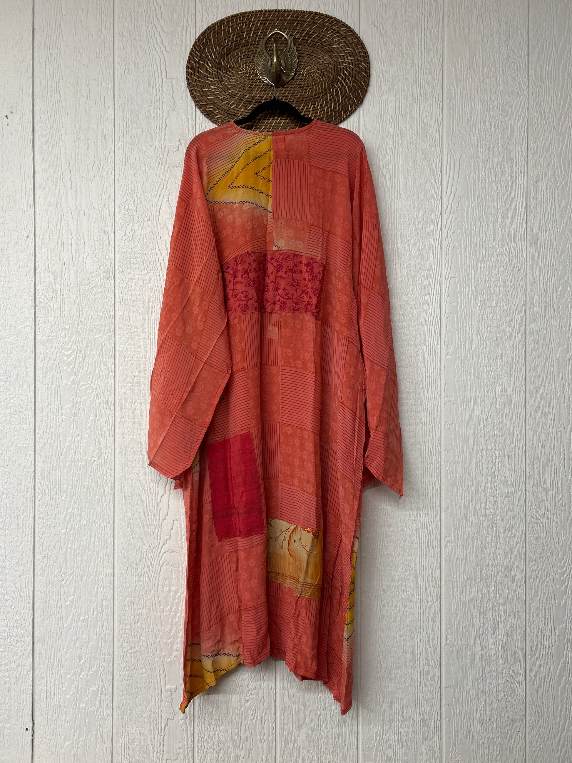 Fabrics may have small threads or holes in the layers. Color inconsistency or small stains may be present. The saris are sewn together and extend the life of each design.