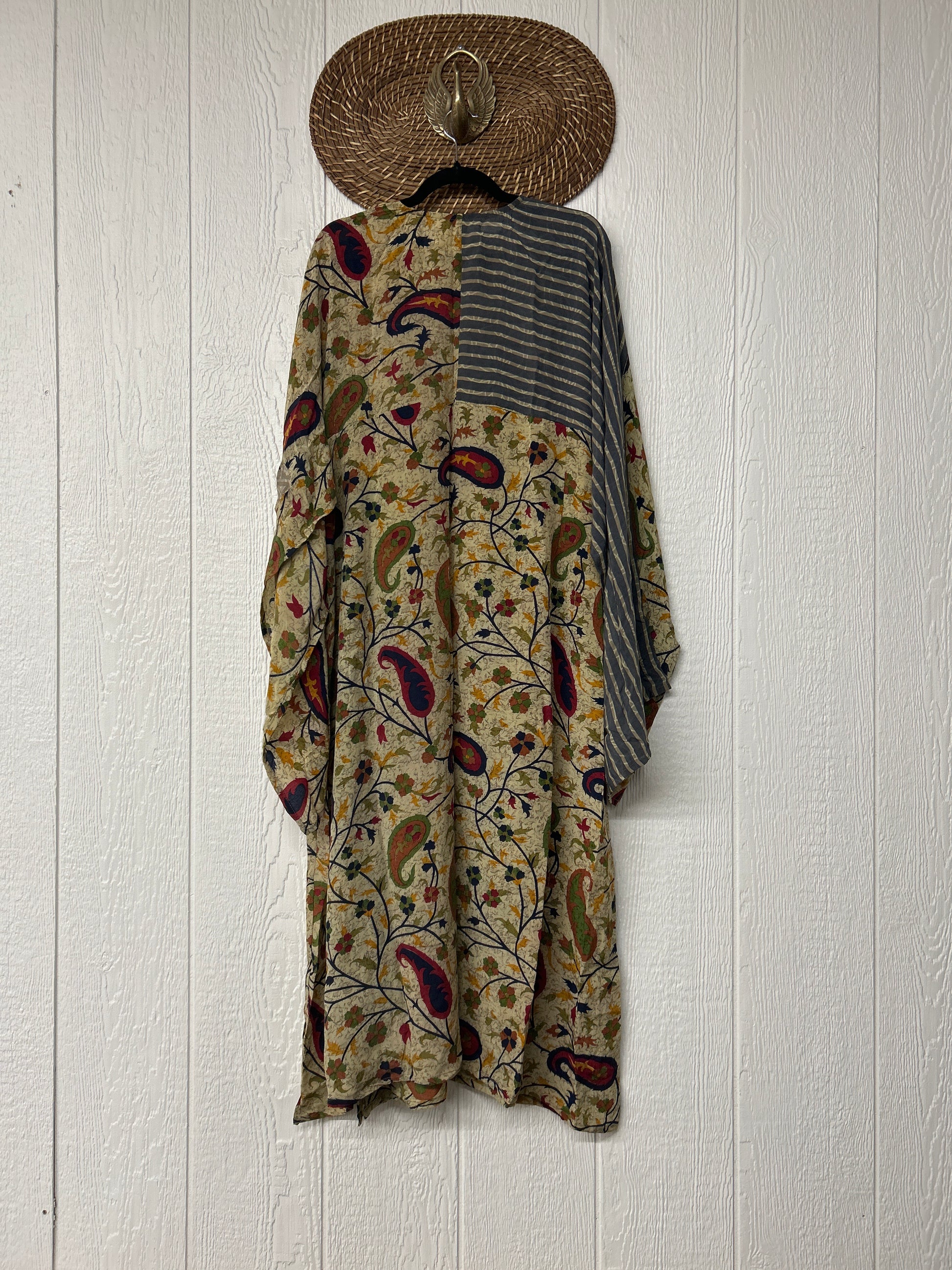 Fabrics may have small threads or holes in the layers. Color inconsistency or small stains may be present. The saris are sewn together and extend the life of each design.