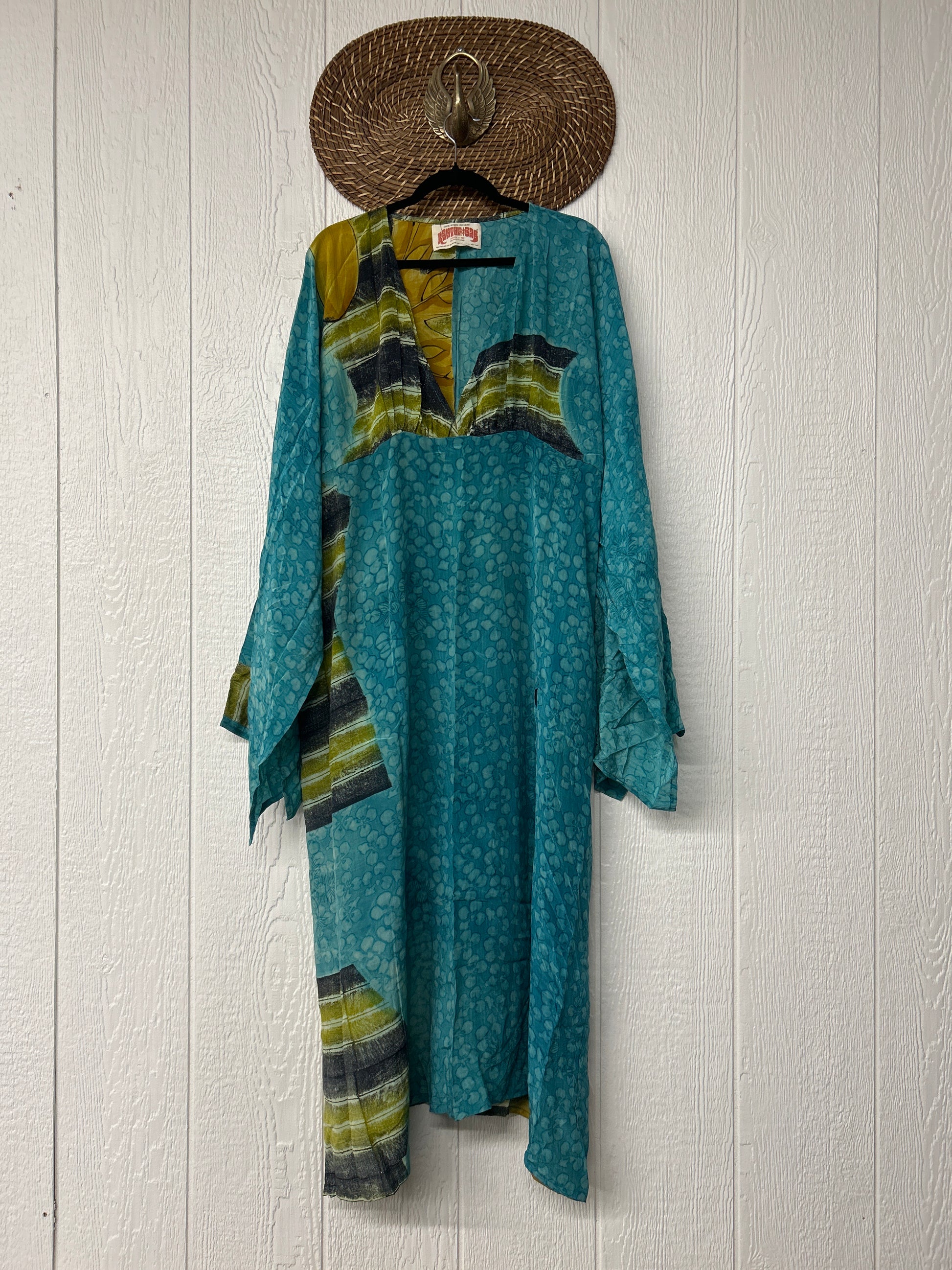 Crafted from our ultra lux vintage crepe sari this floaty dream features wide bell sleeves, deep v neckline, maxi silhouette with side slits for extra dimension.
