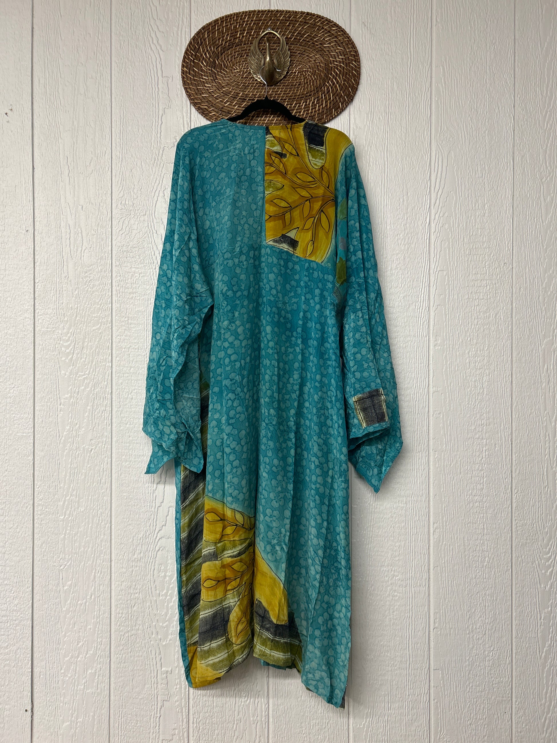 Fabrics may have small threads or holes in the layers. Color inconsistency or small stains may be present. The saris are sewn together and extend the life of each design.
