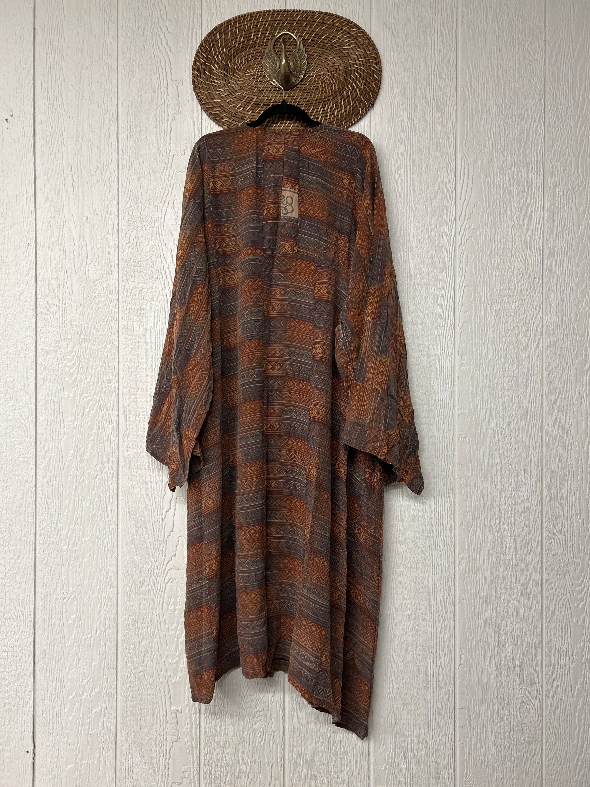 Fabrics may have small threads or holes in the layers. Color inconsistency or small stains may be present. The saris are sewn together and extend the life of each design.