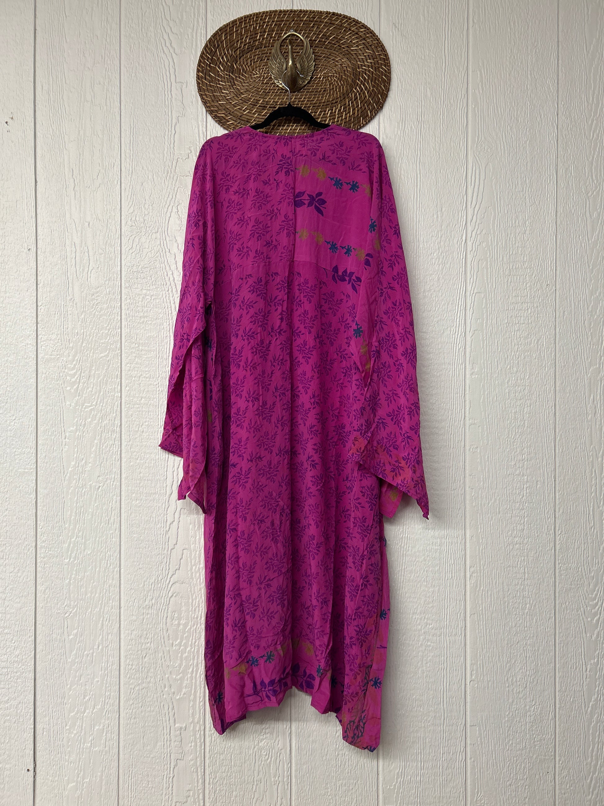 Crafted from our ultra lux vintage crepe sari this floaty dream features wide bell sleeves, deep v neckline, maxi silhouette with side slits for extra dimension.