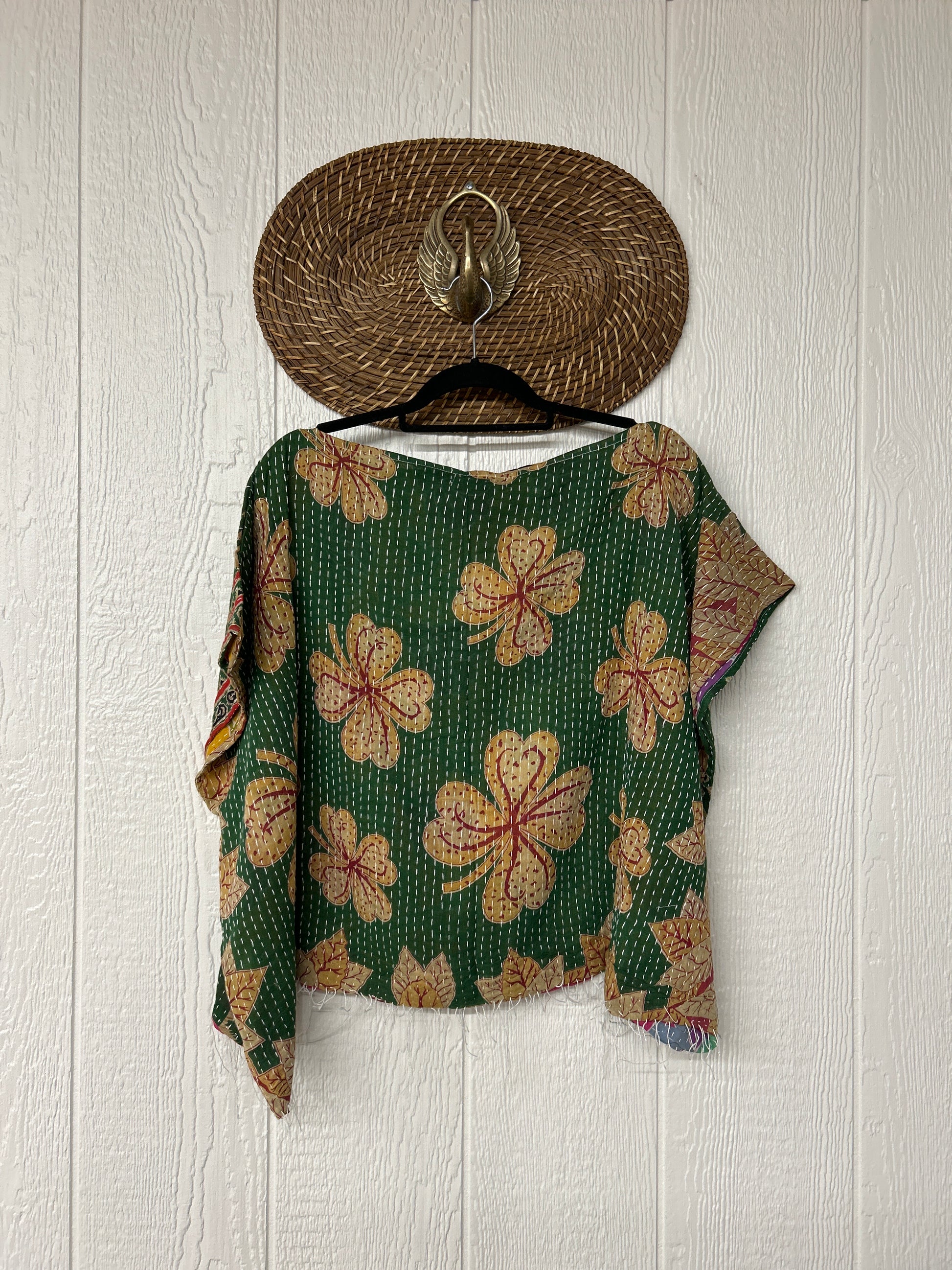 Crafted from kantha stitched vintage cotton sari our OG Crop is slouchy perfection. Fully reversible PLUS you can wear it on ALL four sides. Features an unfinished fringe hem for extra vibes. We know the OG Crop will be your new go to!