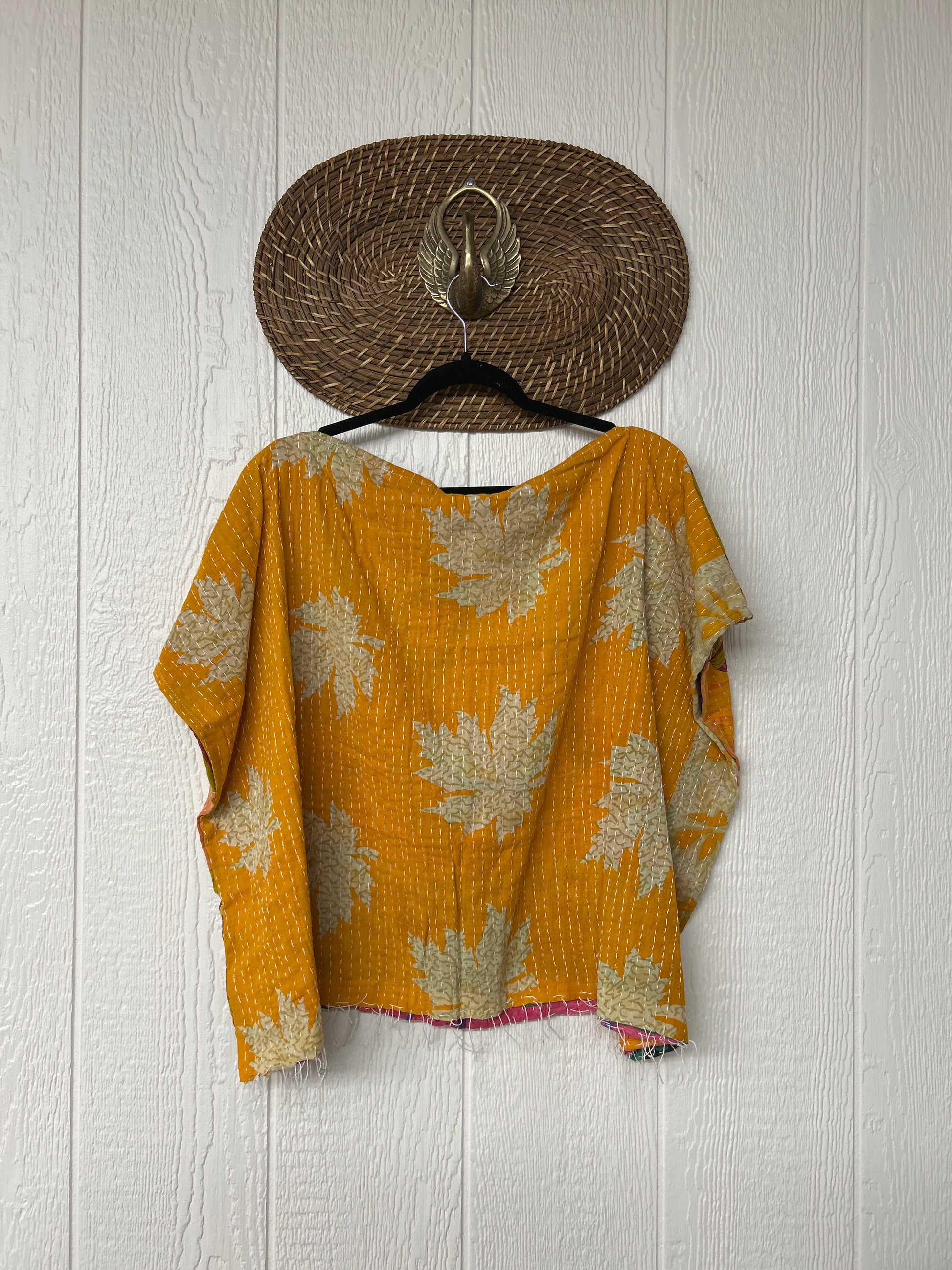 Crafted from kantha stitched vintage cotton sari our OG Crop is slouchy perfection. Fully reversible PLUS you can wear it on ALL four sides. Features an unfinished fringe hem for extra vibes. We know the OG Crop will be your new go to!