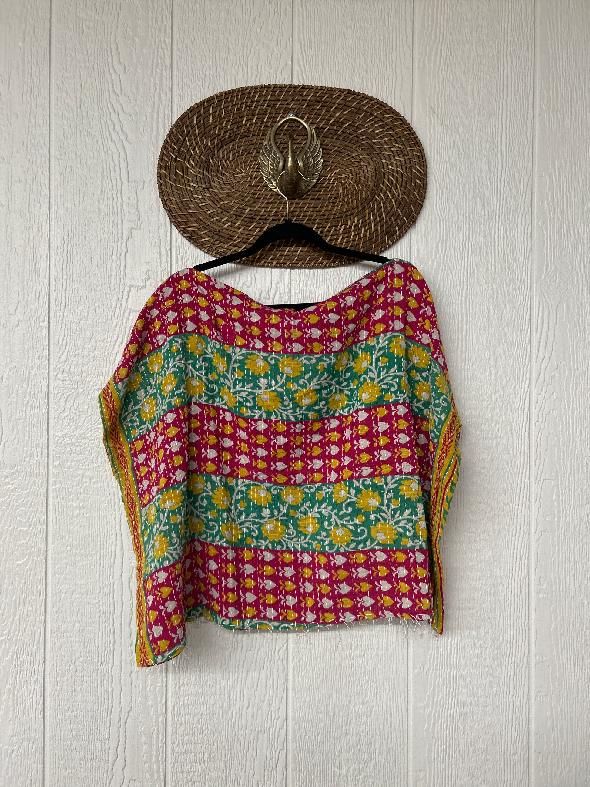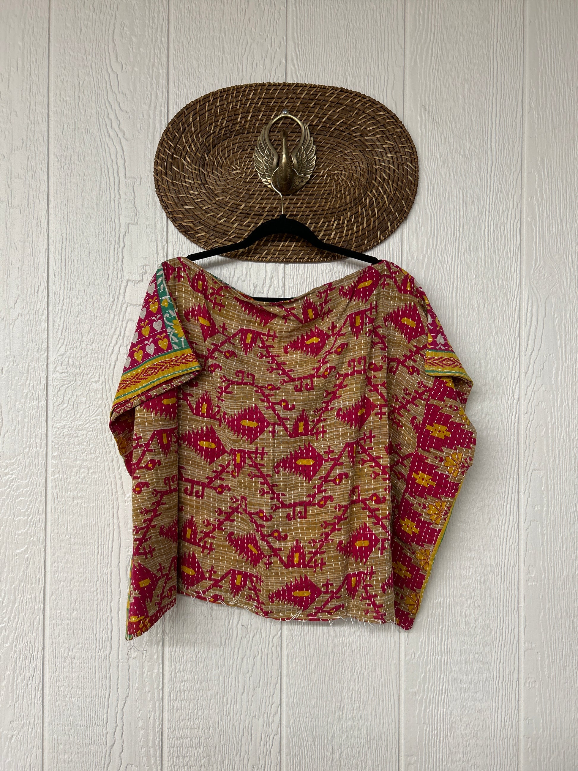 Crafted from kantha stitched vintage cotton sari our OG Crop is slouchy perfection. Fully reversible PLUS you can wear it on ALL four sides. Features an unfinished fringe hem for extra vibes. We know the OG Crop will be your new go to!