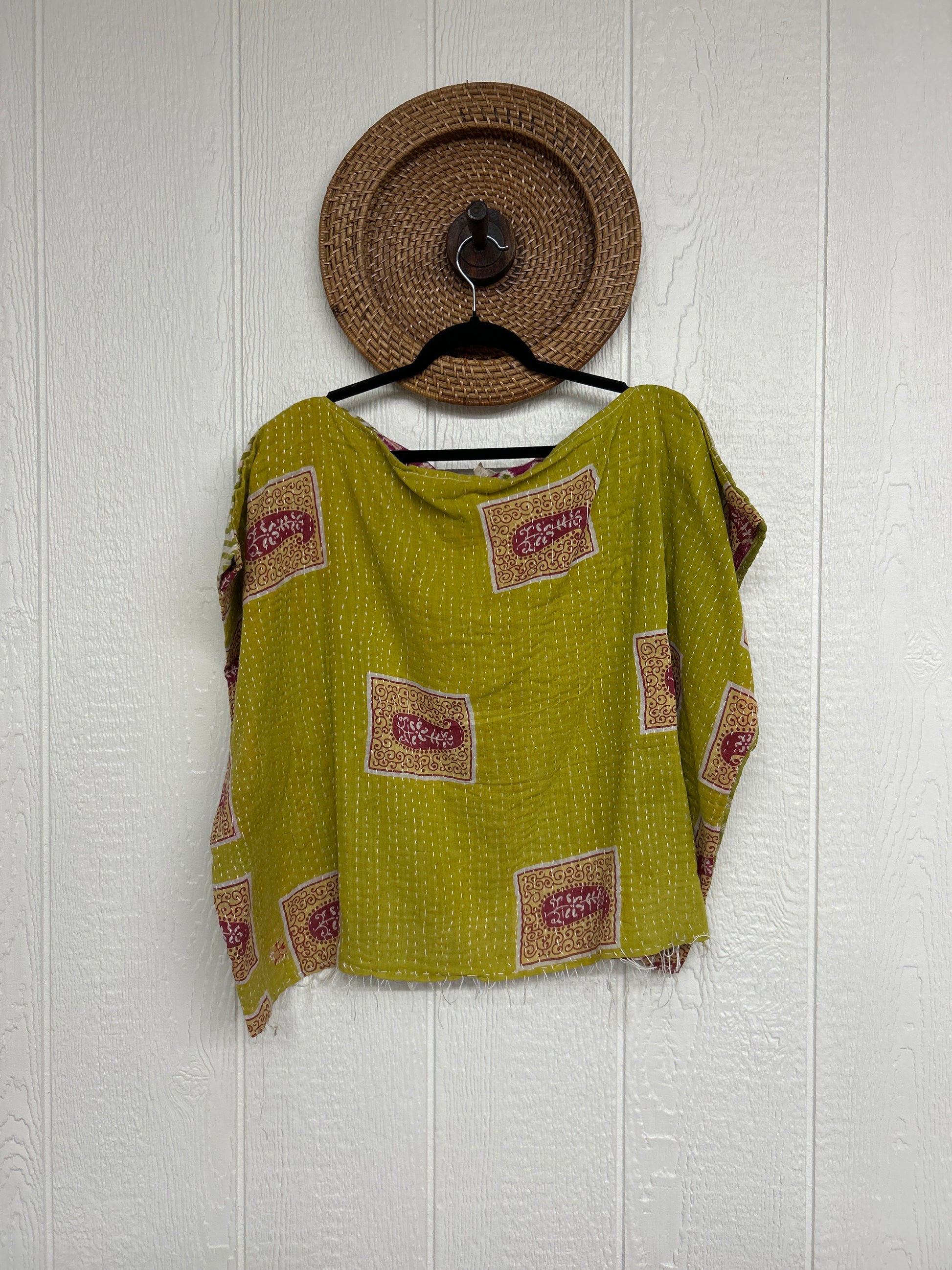 Crafted from kantha stitched vintage cotton sari our OG Crop is slouchy perfection. Fully reversible PLUS you can wear it on ALL four sides. Features an unfinished fringe hem for extra vibes. We know the OG Crop will be your new go to!