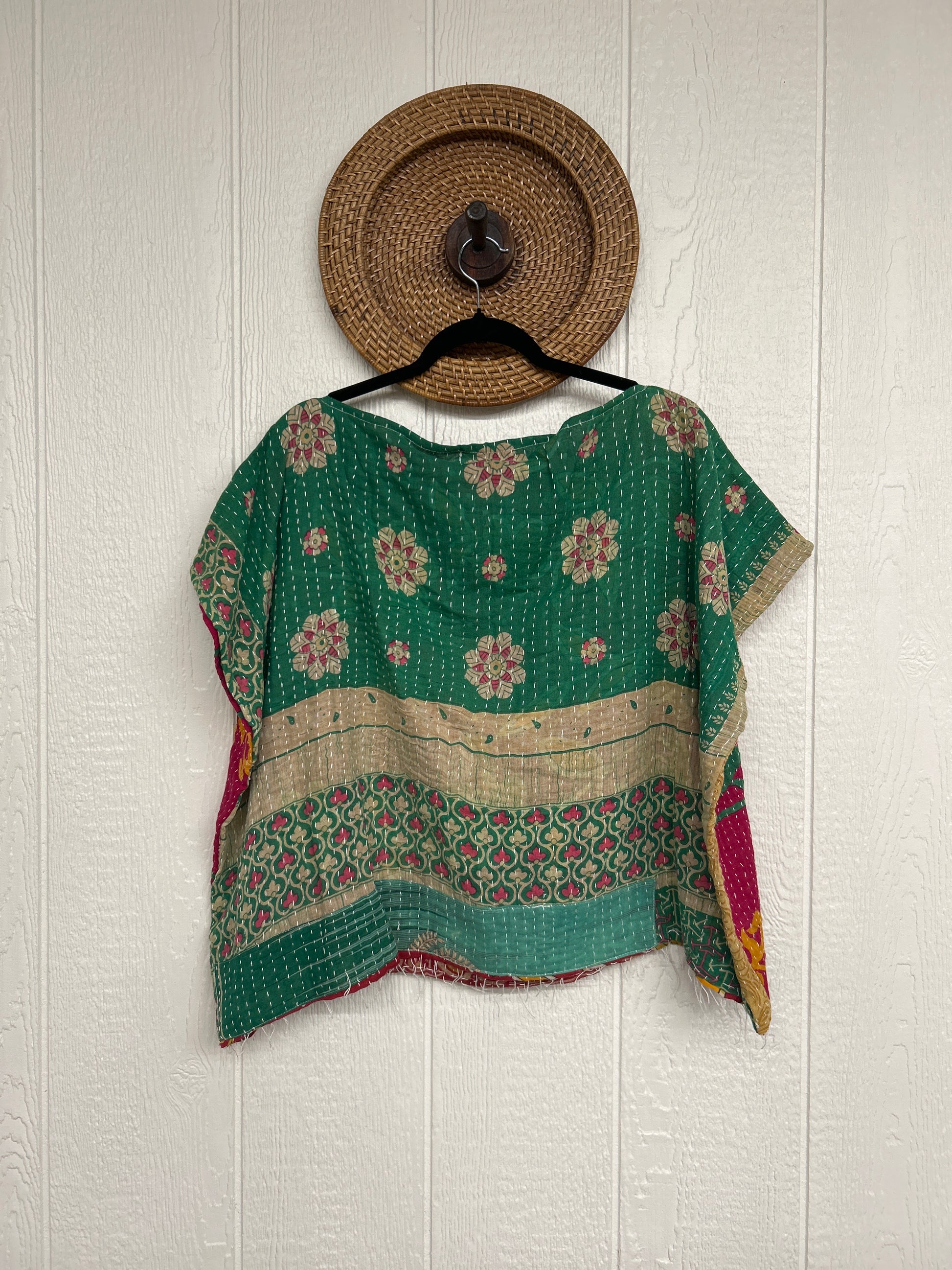 Disclosure: Our vintage styles have lived a full life before becoming the designs in our shop. Fabrics may have small threads or holes in the layers. Color inconsistency or small stains may be present. The saris are sewn together and extend the life of each design.