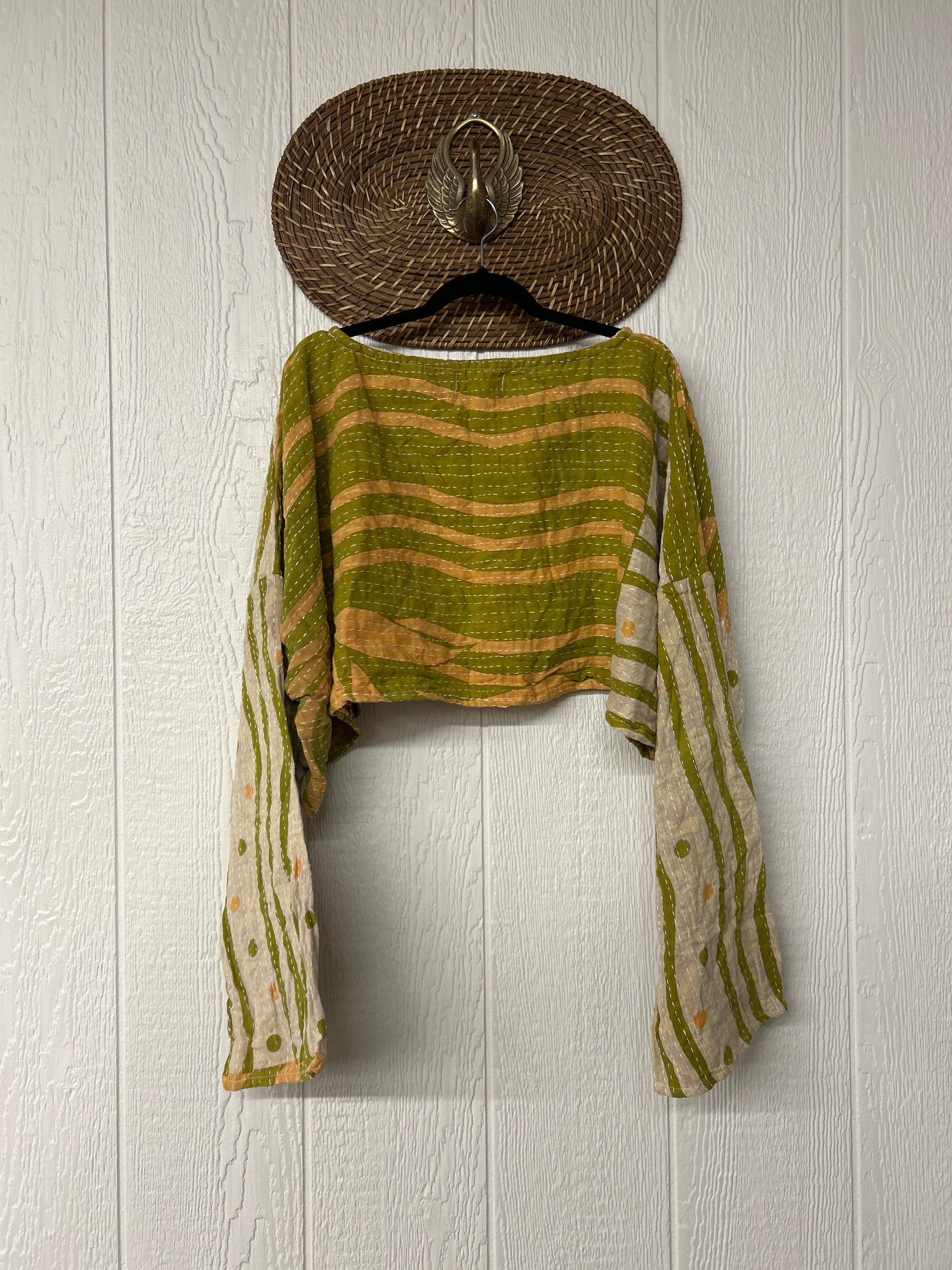 sari. Features long wide sleeves and a funky crop silhouette to wear with all your favorite KB bottoms.