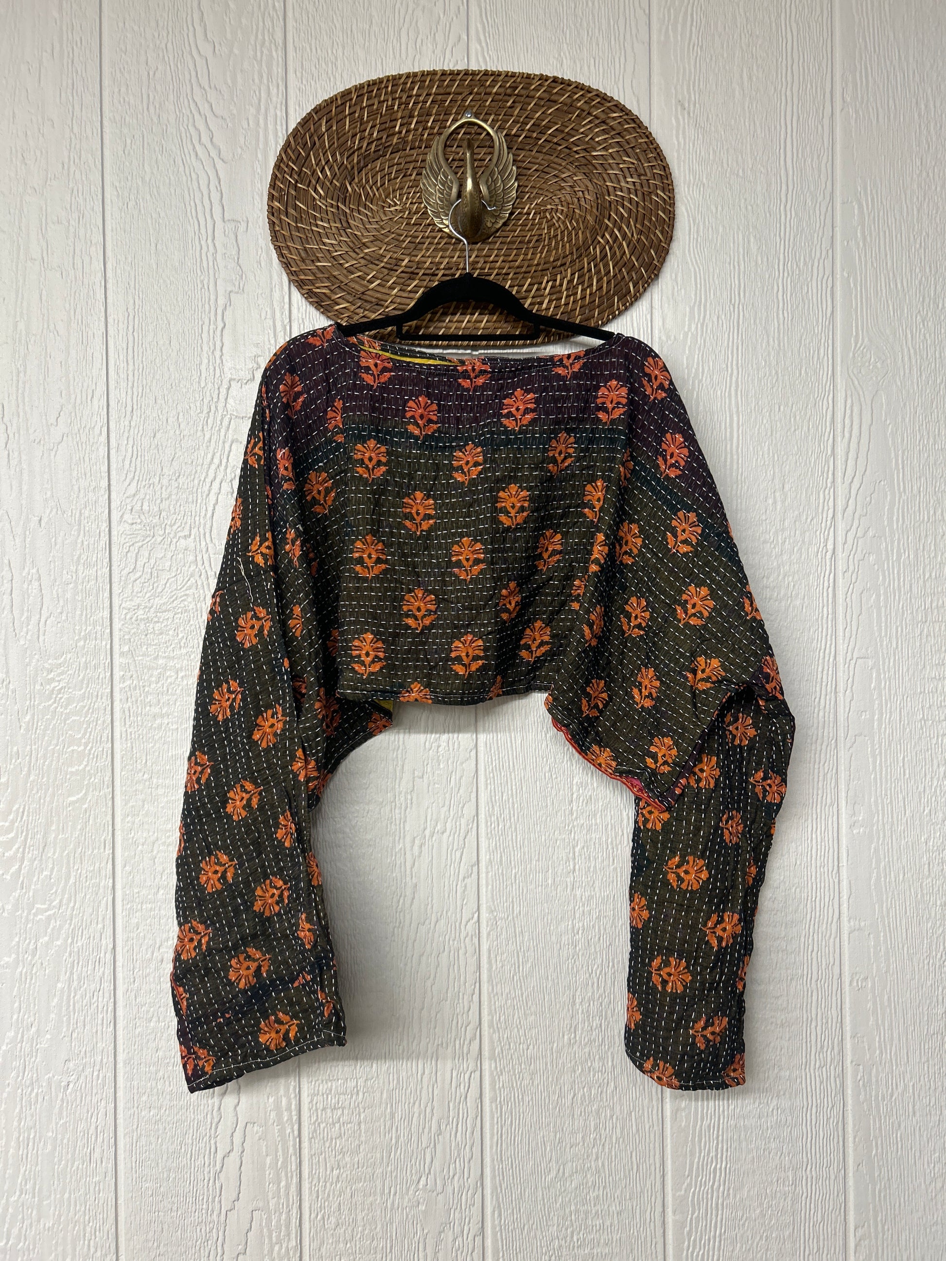 sari. Features long wide sleeves and a funky crop silhouette to wear with all your favorite KB bottoms.