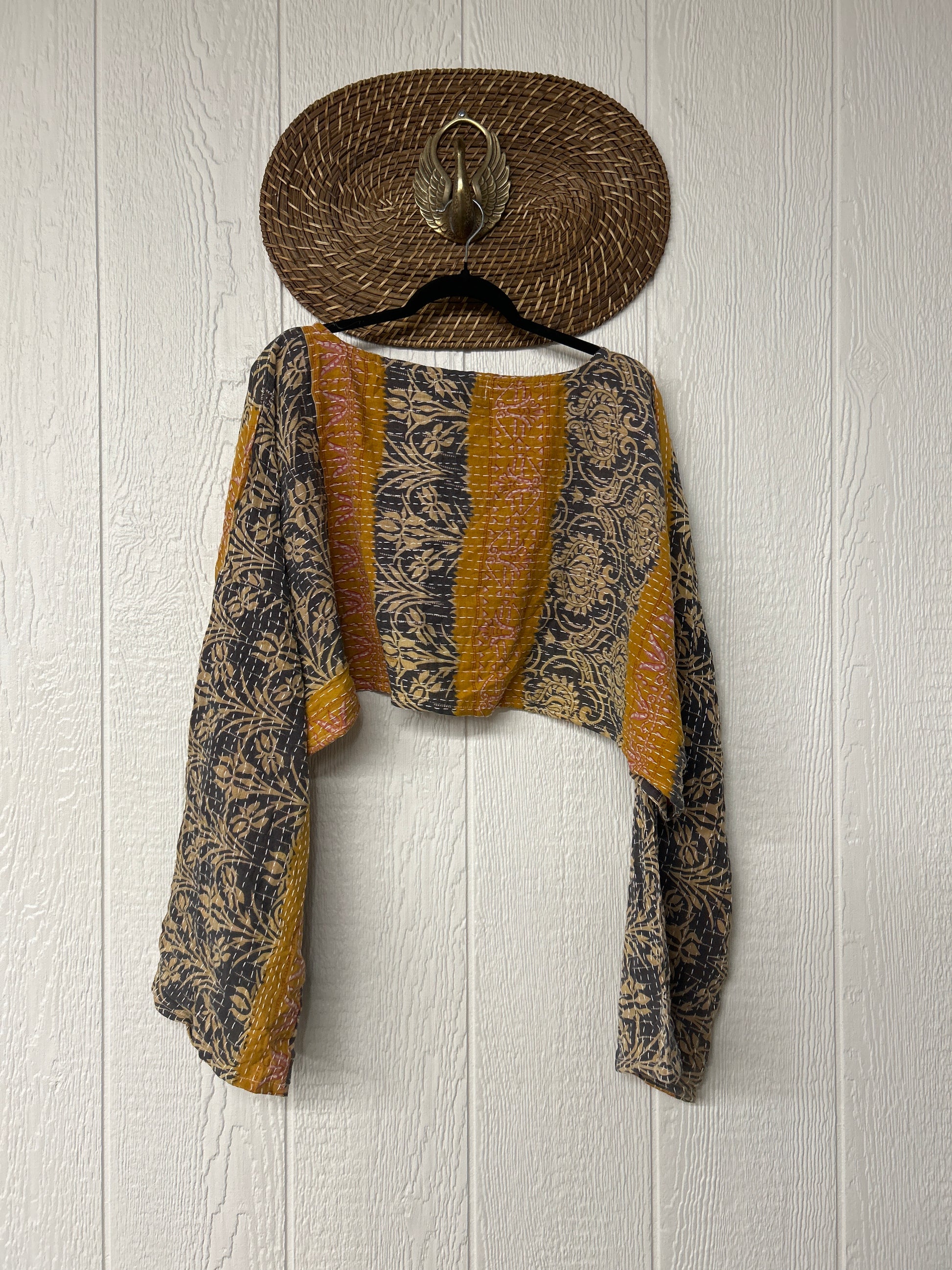 sari. Features long wide sleeves and a funky crop silhouette to wear with all your favorite KB bottoms.