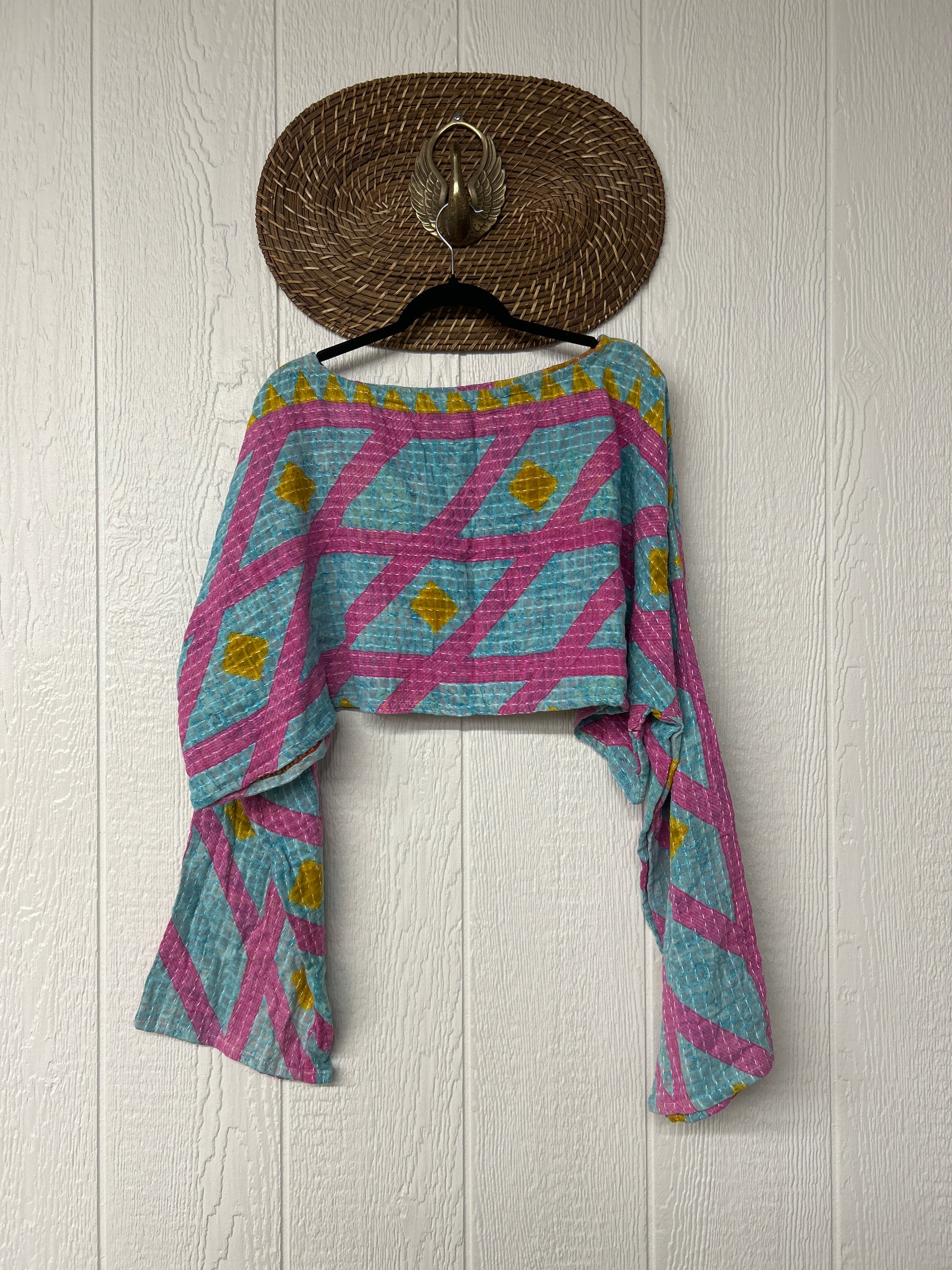 sari. Features long wide sleeves and a funky crop silhouette to wear with all your favorite KB bottoms.