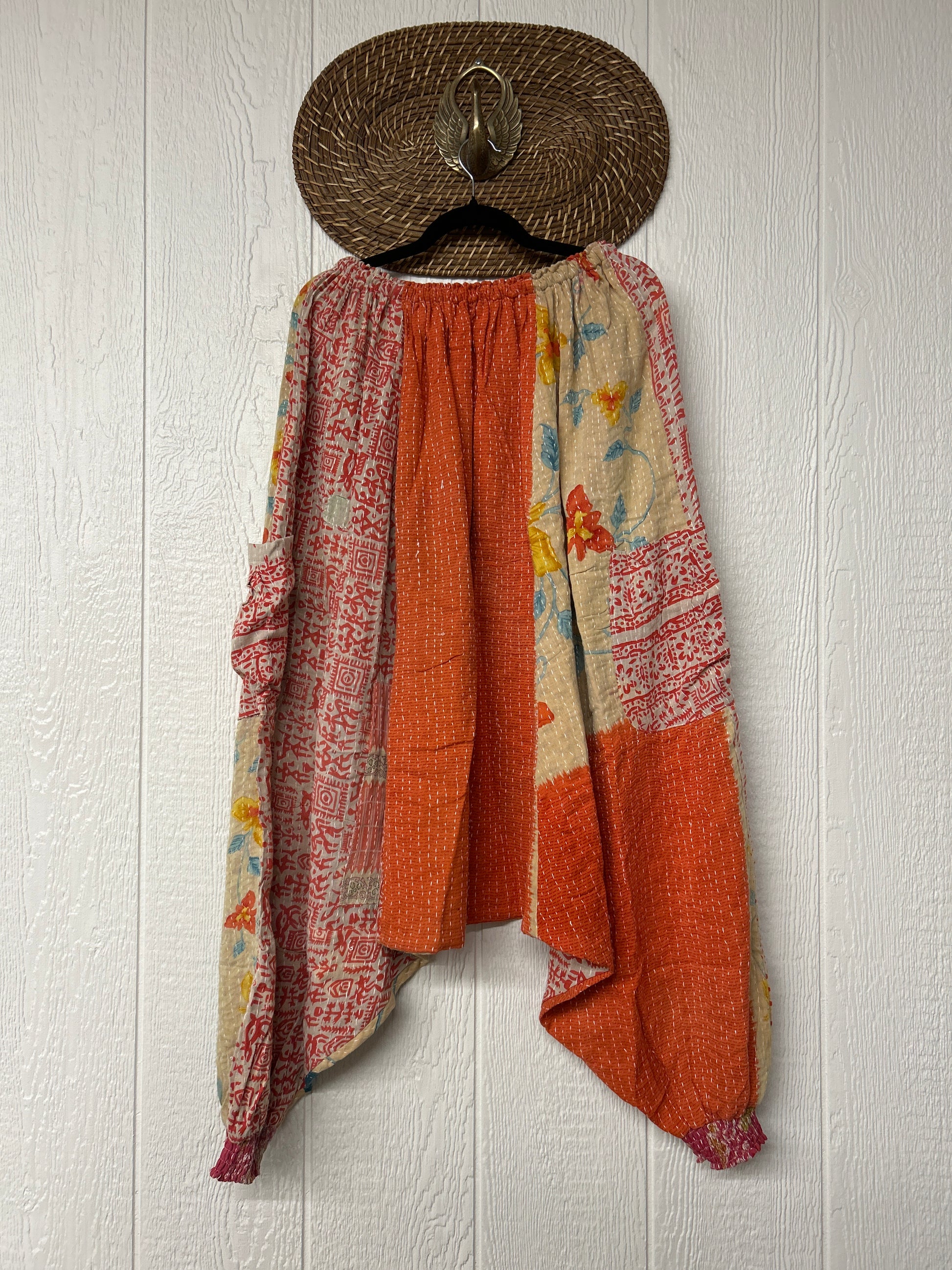 Made from our vintage kantha cotton sari with a super slouchy low harem crotch drop, slouchy exterior pockets, elastic waist with drawstring snd soft smocked elastic on the ankles.