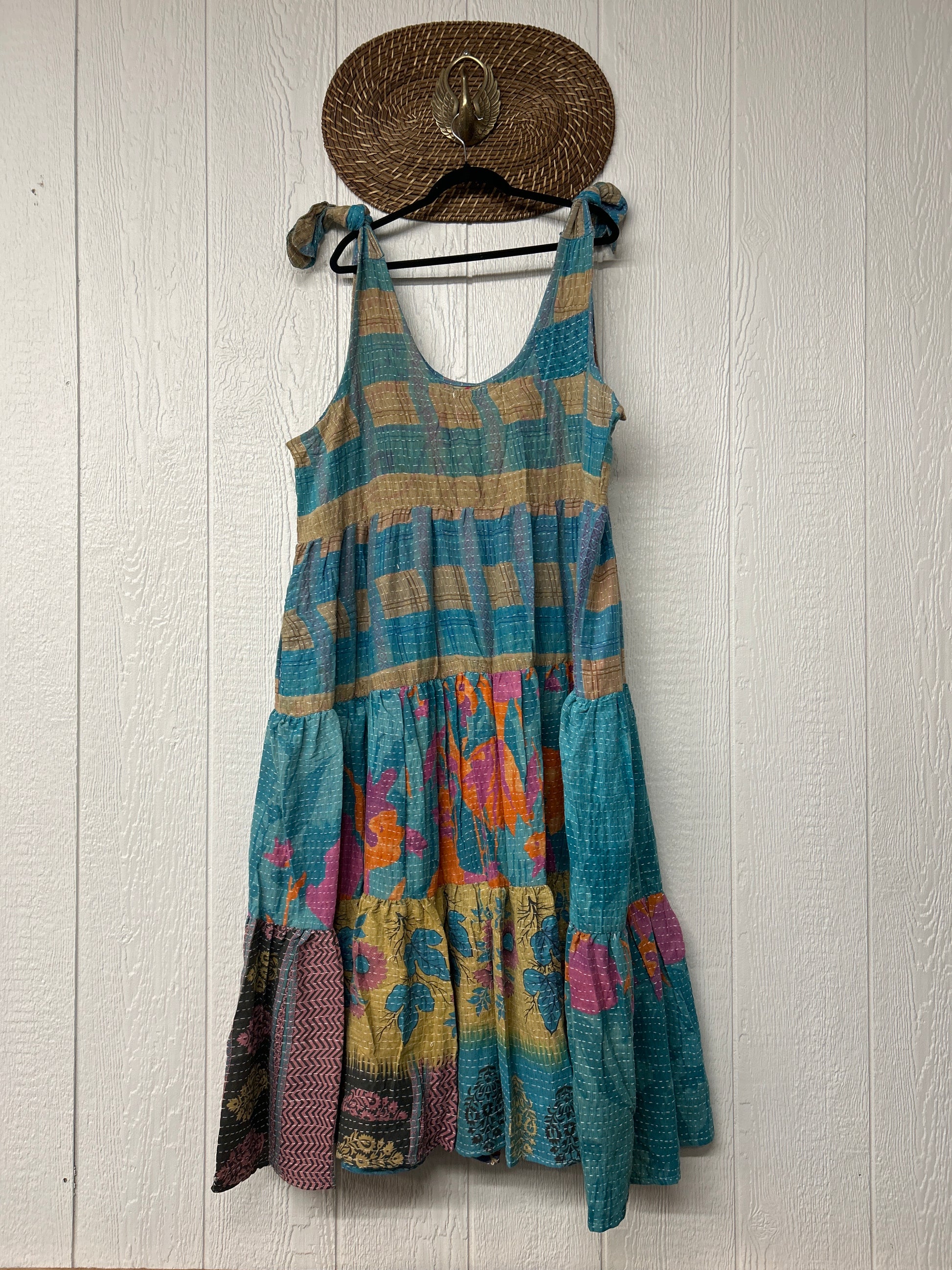 This femine and floaty tiered dress features tie straps for full customization and pockets.