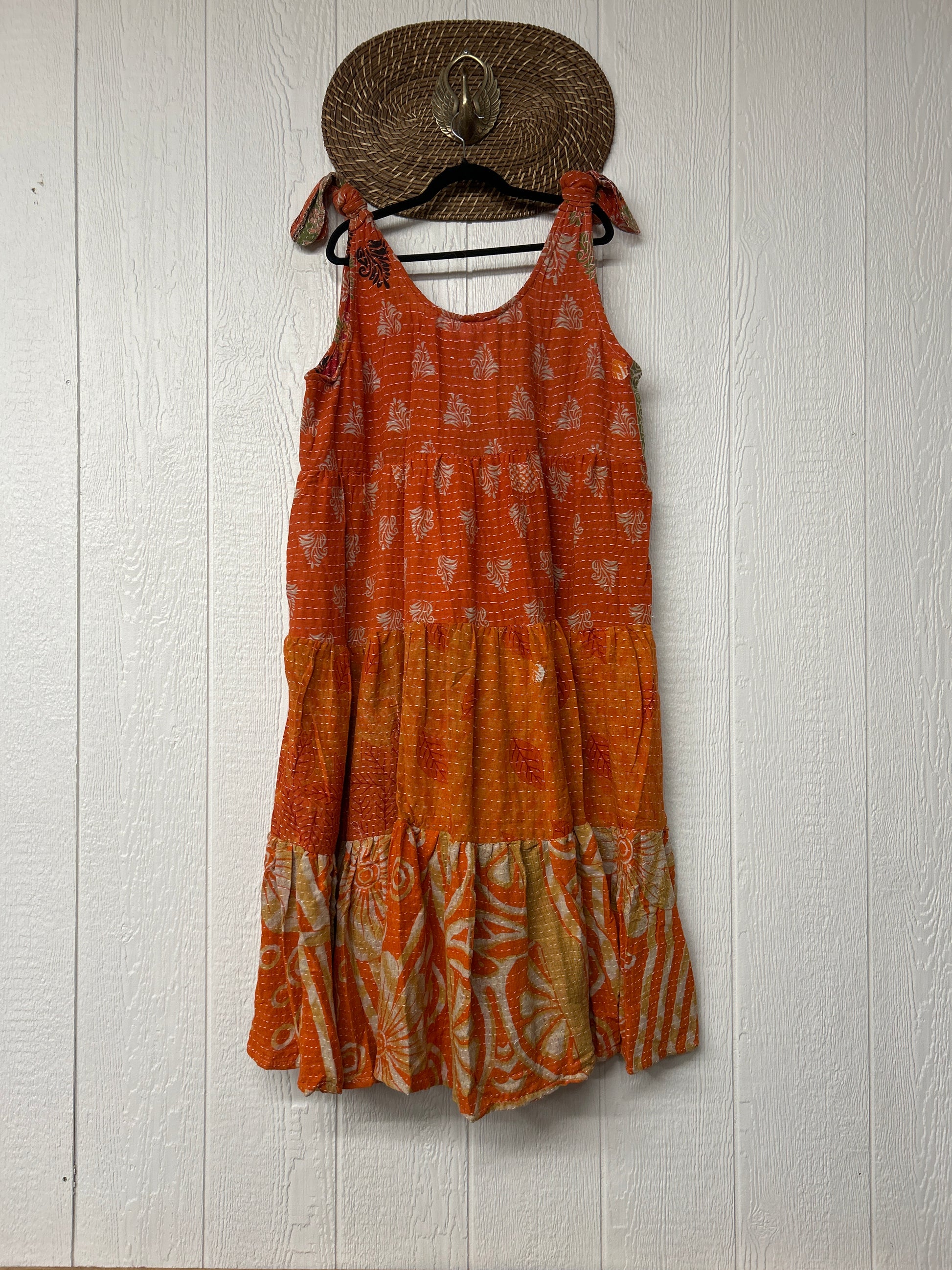 Fabrics may have small threads or holes in the layers. Color inconsistency or small stains may be present. The saris are sewn together and extend the life of each design. Imperfections should be celebrated.