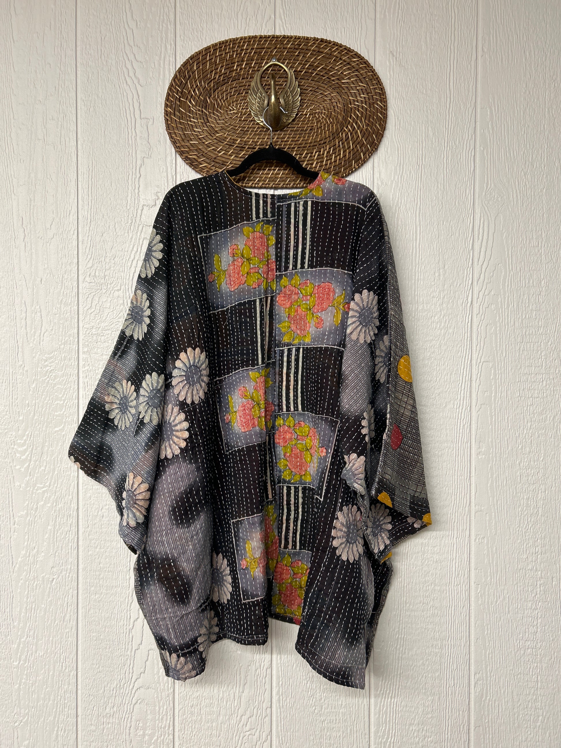 The Gaia Button-Down Kimono is made from our ultra lux Kantha stitched cotton sari and features buttons all the way down and two slouchy pockets at the front. This flowy wonder is our new favorite.