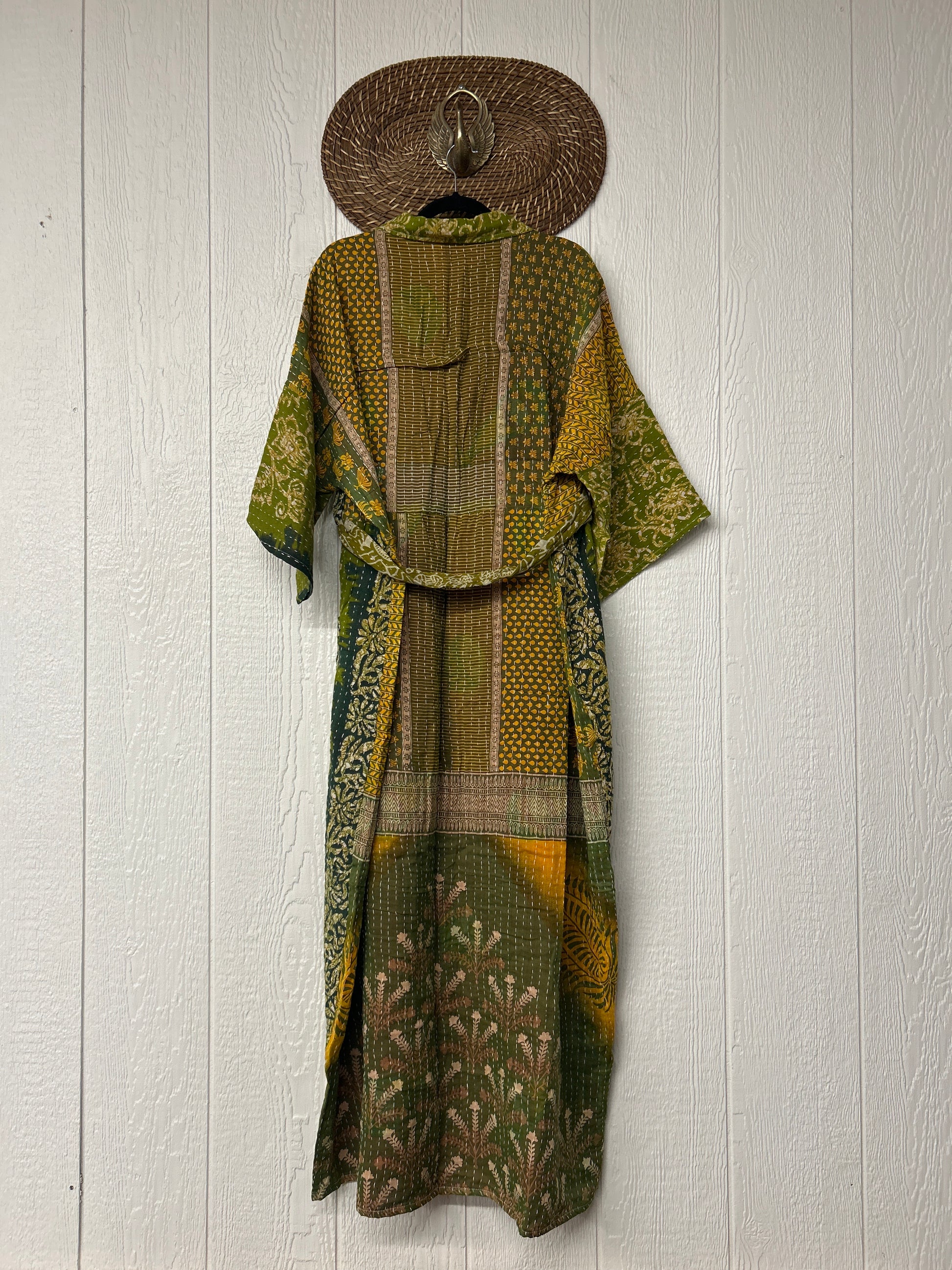Crafted from our ultra-luxe Kantha stitch vintage cotton sari the Gravity Duster Dress features a button down front placket, adjustable belt.