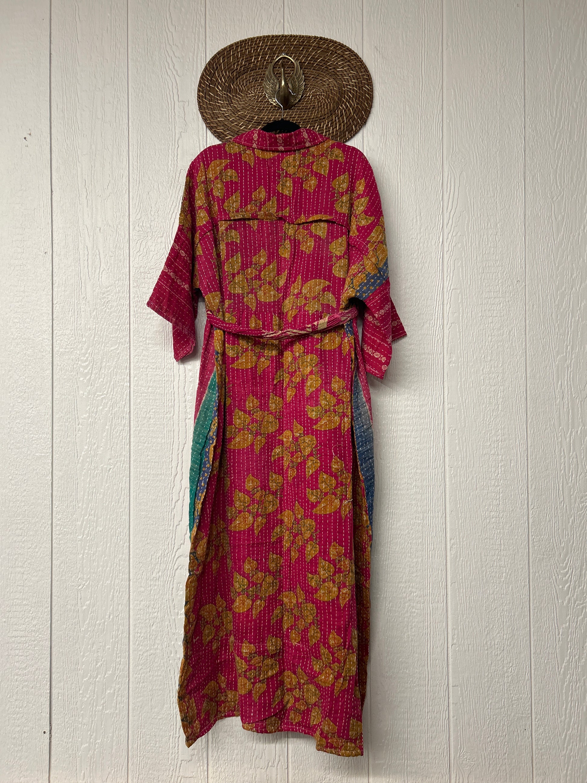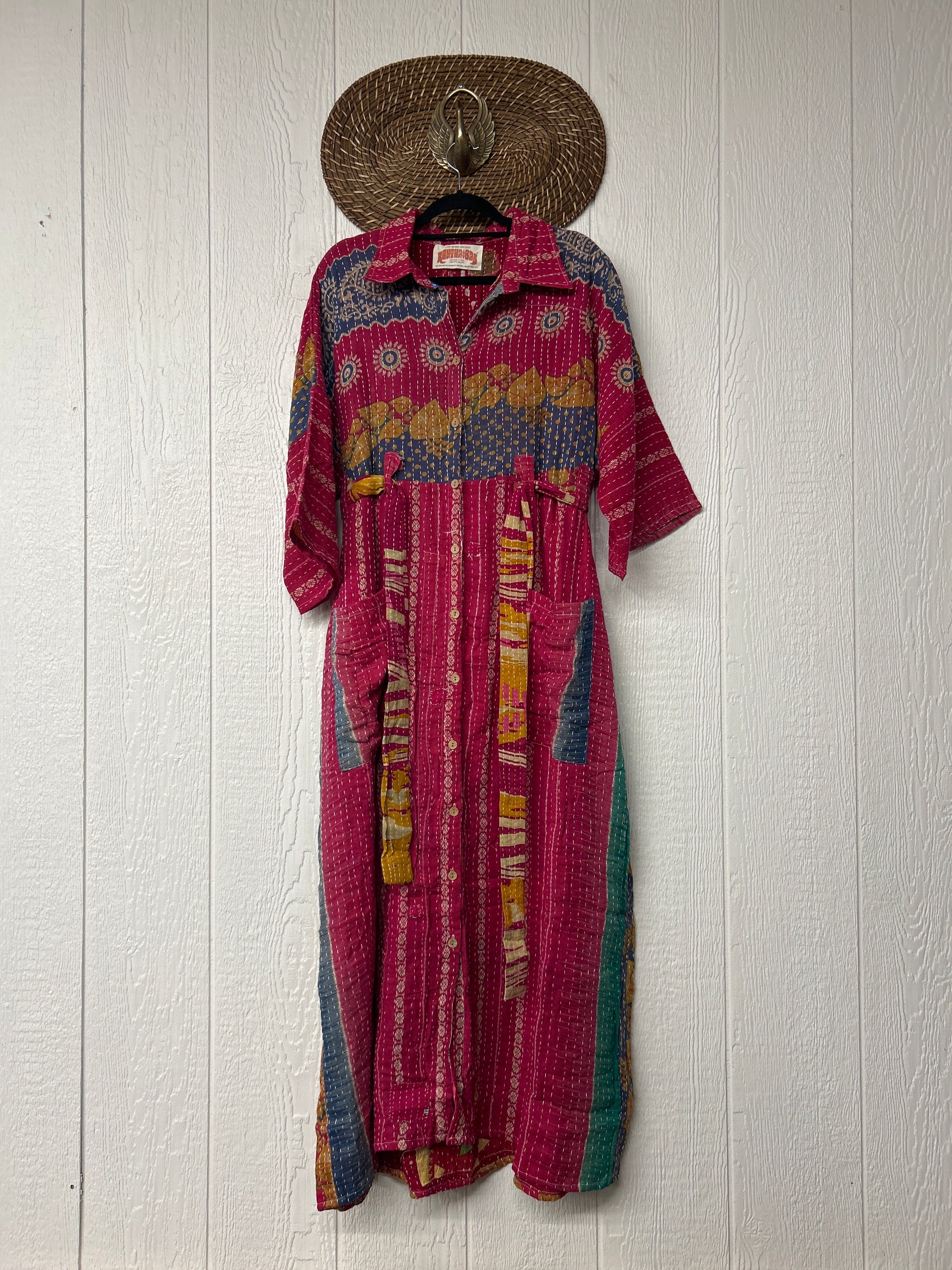 Crafted from our ultra-luxe Kantha stitch vintage cotton sari the Gravity Duster Dress features a button down front placket, adjustable belt.