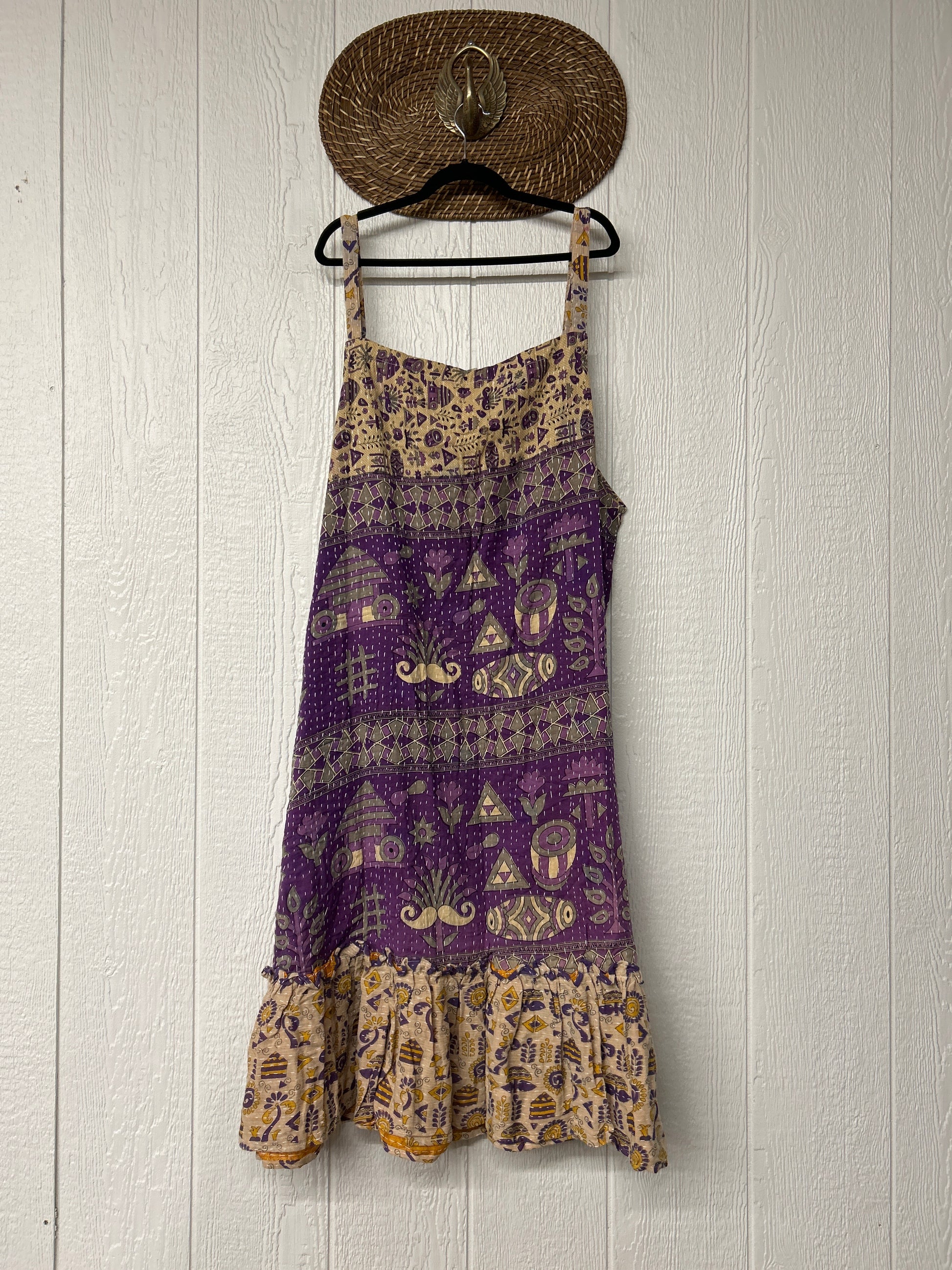 This groovy dream is made from our vintage cotton kantha sari. Crafted and sewn by families in a small village in Northern India providing work and a fair living. Disclosure: Our vintage styles have lived a full life before becoming the designs in our shop. Fabrics may have small threads or holes in the layers. Color inconsistency or small stains may be present.The saris are sewn together and extend the life of each design. Imperfections should be celebrated.