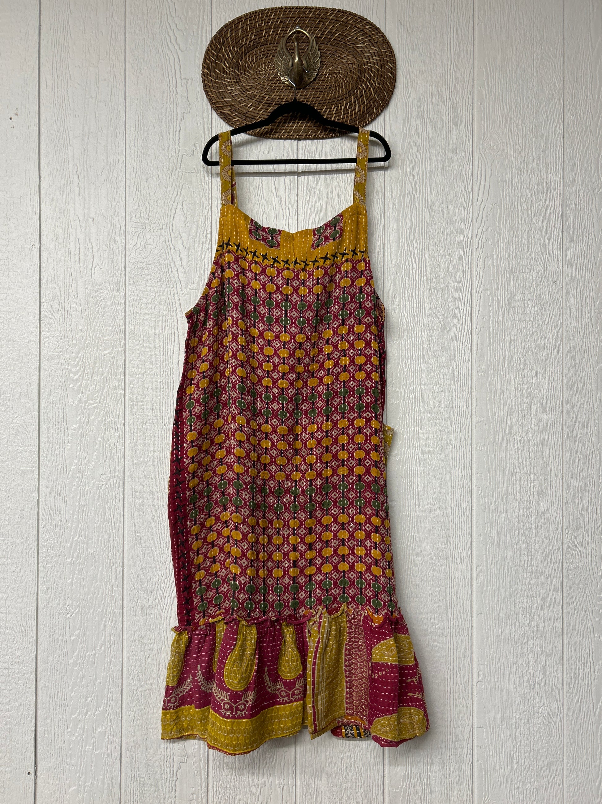 This groovy dream is made from our vintage cotton kantha sari. Crafted and sewn by families in a small village in Northern India providing work and a fair living. Disclosure: Our vintage styles have lived a full life before becoming the designs in our shop. Fabrics may have small threads or holes in the layers. Color inconsistency or small stains may be present.The saris are sewn together and extend the life of each design. Imperfections should be celebrated.