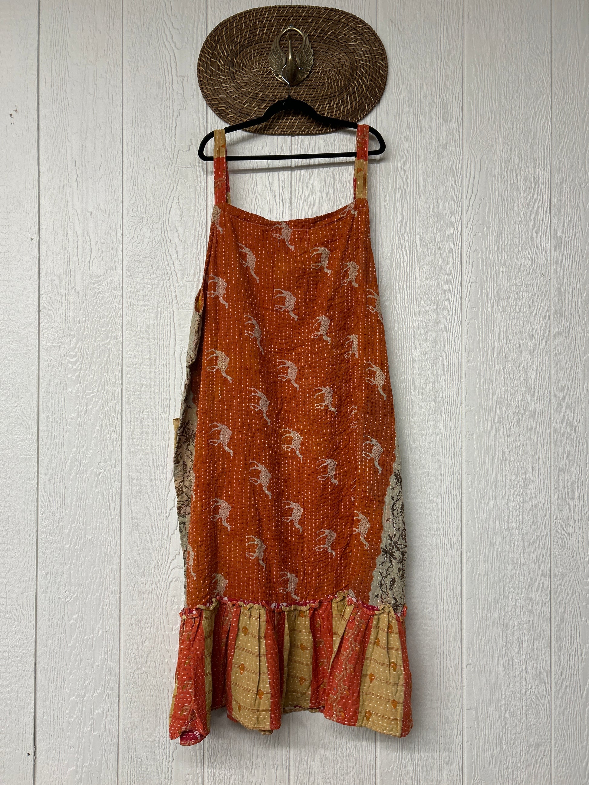 This groovy dream is made from our vintage cotton kantha sari. Crafted and sewn by families in a small village in Northern India providing work and a fair living. Disclosure: Our vintage styles have lived a full life before becoming the designs in our shop. Fabrics may have small threads or holes in the layers. Color inconsistency or small stains may be present.The saris are sewn together and extend the life of each design. Imperfections should be celebrated.