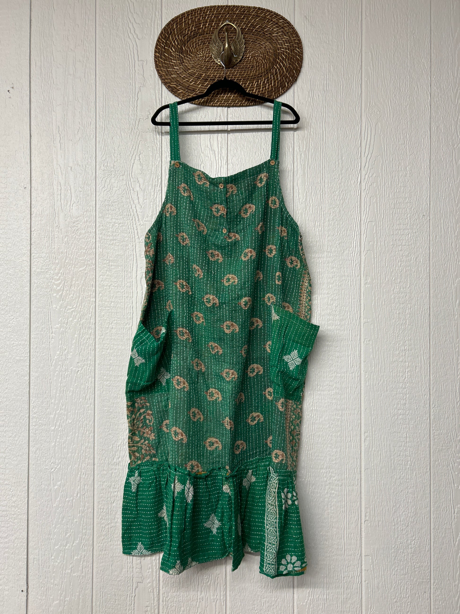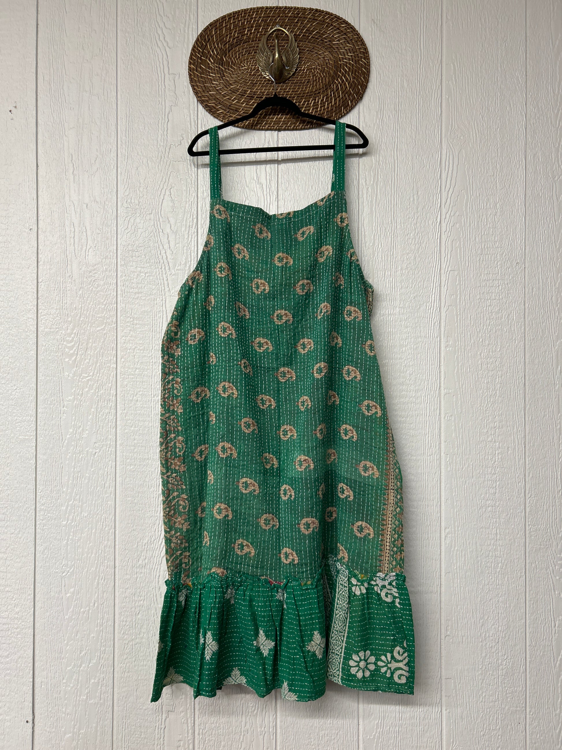 This groovy dream is made from our vintage cotton kantha sari. Crafted and sewn by families in a small village in Northern India providing work and a fair living. Disclosure: Our vintage styles have lived a full life before becoming the designs in our shop. Fabrics may have small threads or holes in the layers. Color inconsistency or small stains may be present.The saris are sewn together and extend the life of each design. Imperfections should be celebrated.
