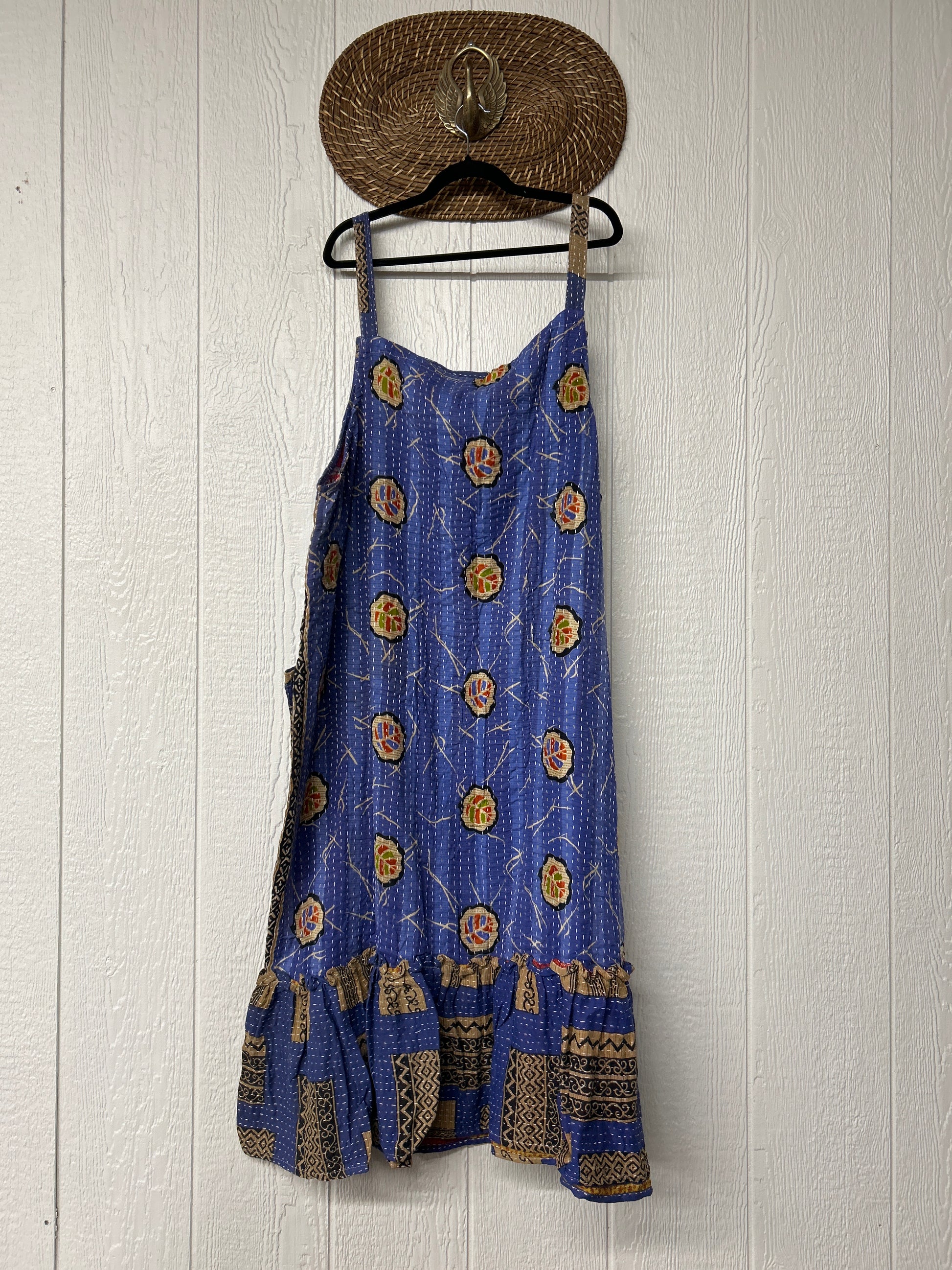 This groovy dream is made from our vintage cotton kantha sari. Crafted and sewn by families in a small village in Northern India providing work and a fair living. Disclosure: Our vintage styles have lived a full life before becoming the designs in our shop. Fabrics may have small threads or holes in the layers. Color inconsistency or small stains may be present.The saris are sewn together and extend the life of each design. Imperfections should be celebrated.