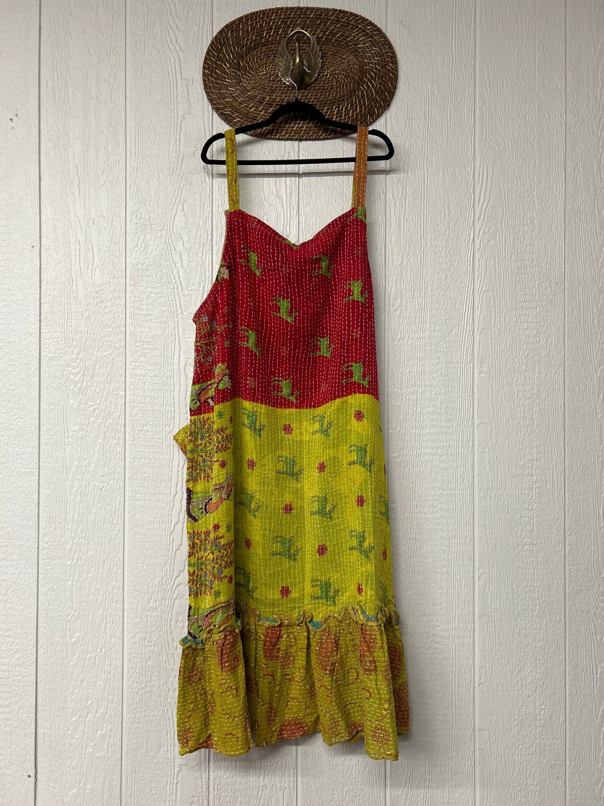 This groovy dream is made from our vintage cotton kantha sari. Crafted and sewn by families in a small village in Northern India providing work and a fair living. Disclosure: Our vintage styles have lived a full life before becoming the designs in our shop. Fabrics may have small threads or holes in the layers. Color inconsistency or small stains may be present.The saris are sewn together and extend the life of each design. Imperfections should be celebrated.