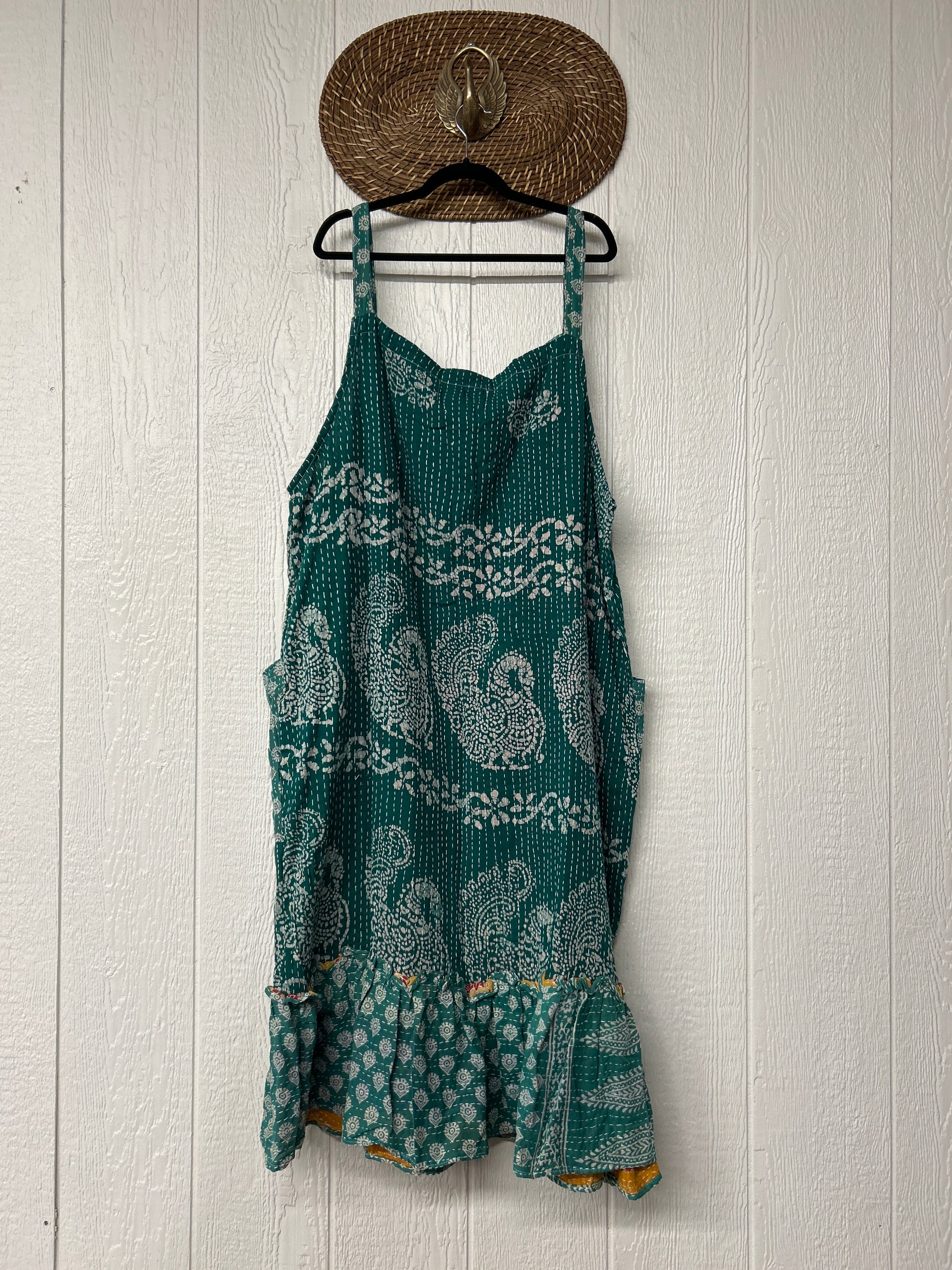 This groovy dream is made from our vintage cotton kantha sari. Crafted and sewn by families in a small village in Northern India providing work and a fair living. Disclosure: Our vintage styles have lived a full life before becoming the designs in our shop. Fabrics may have small threads or holes in the layers. Color inconsistency or small stains may be present.The saris are sewn together and extend the life of each design. Imperfections should be celebrated.
