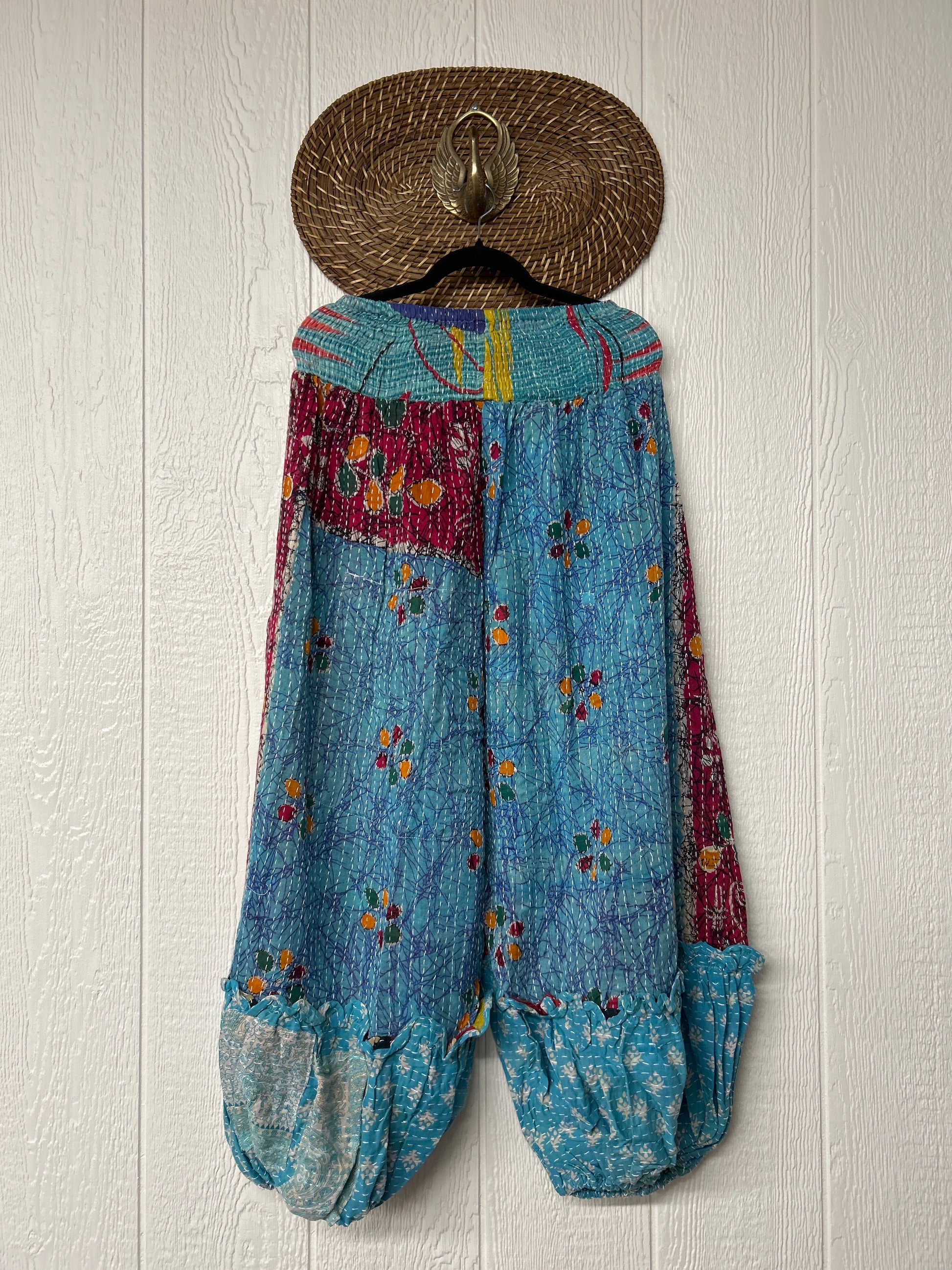 Crafted from our ultra lux kantha stitched vintage cotton sari these pants feature exterior slouchy pockets, a stretchy waistband and an elastic ankle opening. Dress these dream pants up or down to become the ultimate vibe!