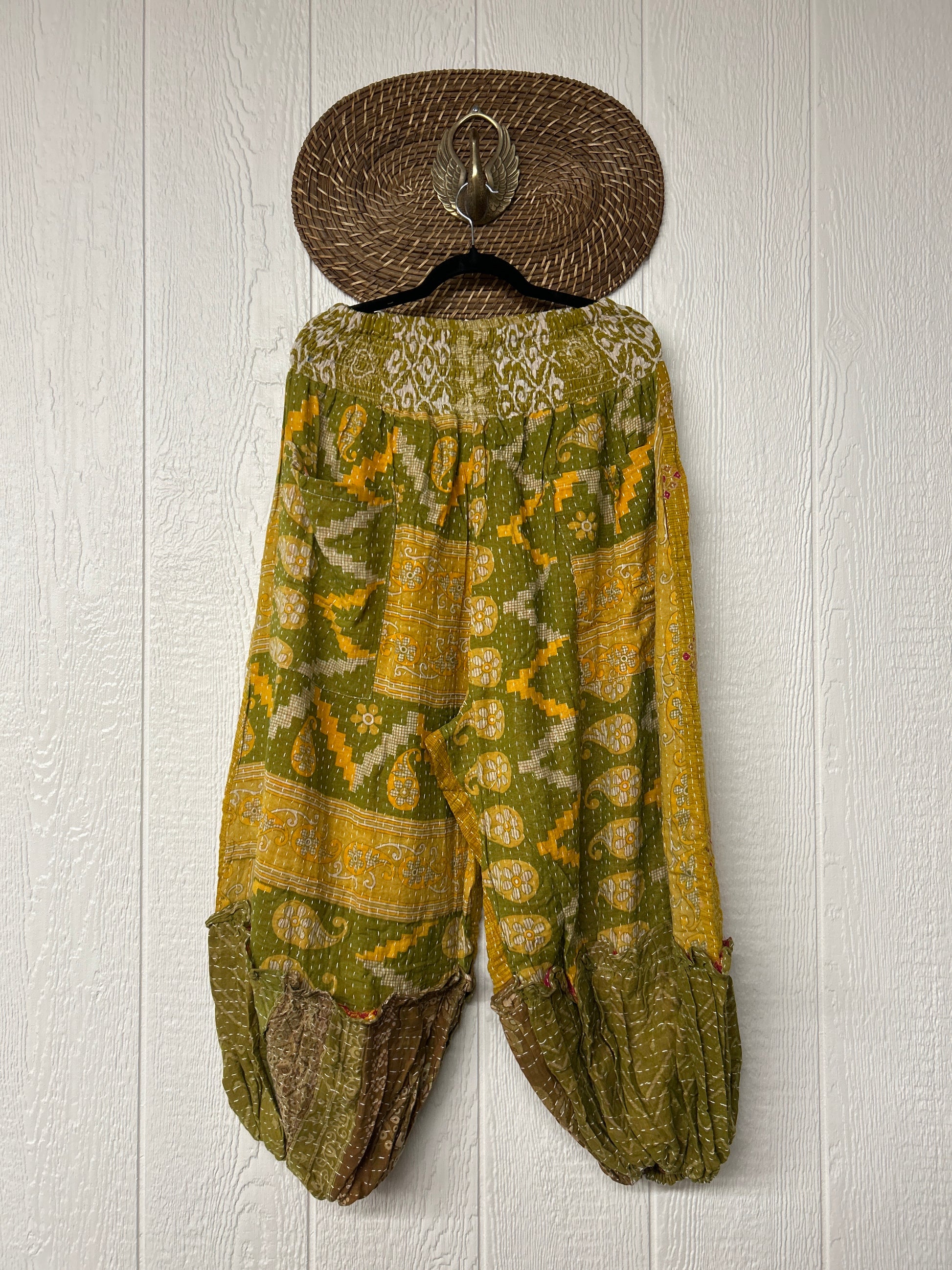Crafted from our ultra lux kantha stitched vintage cotton sari these pants feature exterior slouchy pockets, a stretchy waistband and an elastic ankle opening. Dress these dream pants up or down to become the ultimate vibe!