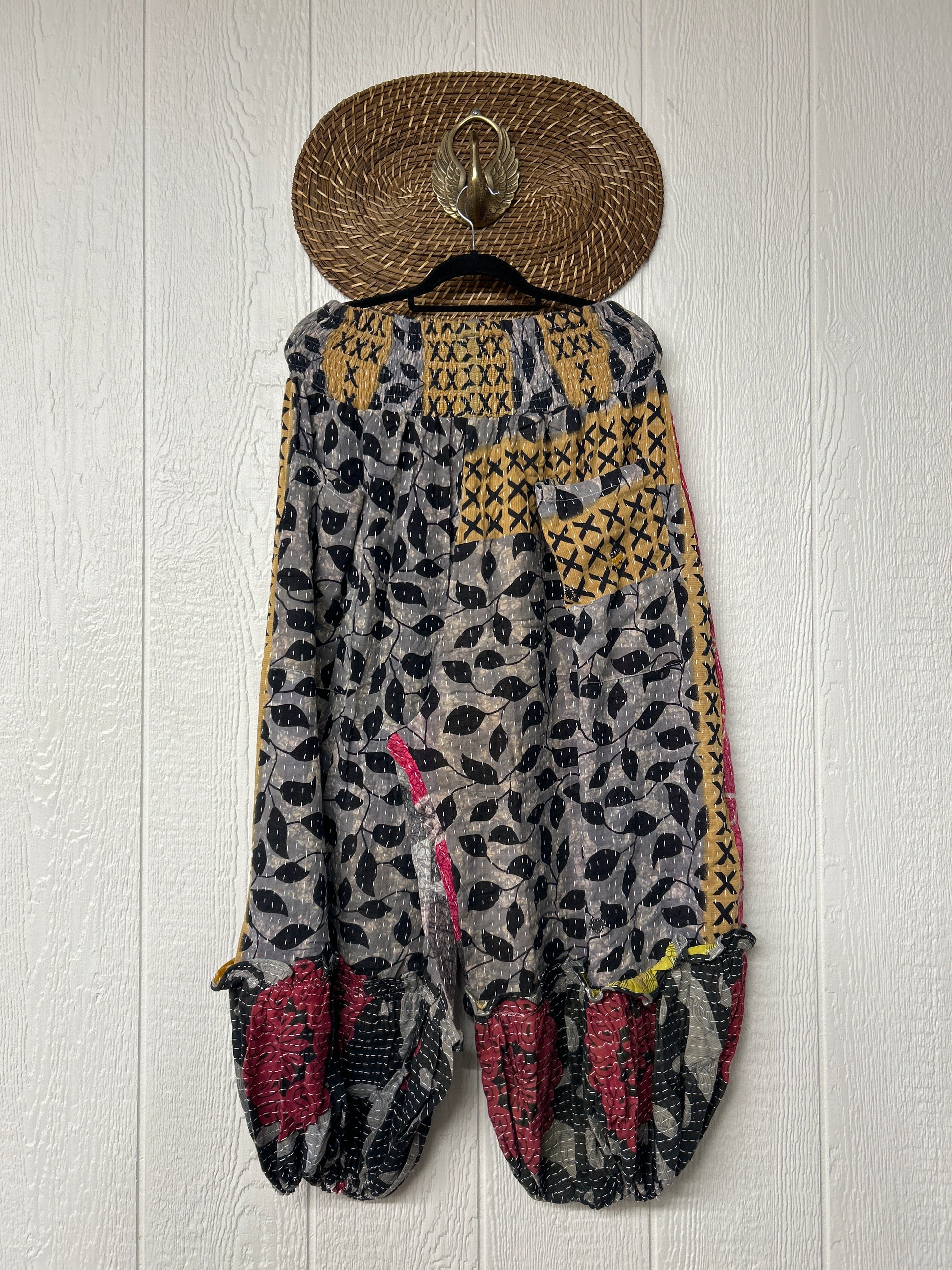 Crafted from our ultra lux kantha stitched vintage cotton sari these pants feature exterior slouchy pockets, a stretchy waistband and an elastic ankle opening. Dress these dream pants up or down to become the ultimate vibe!