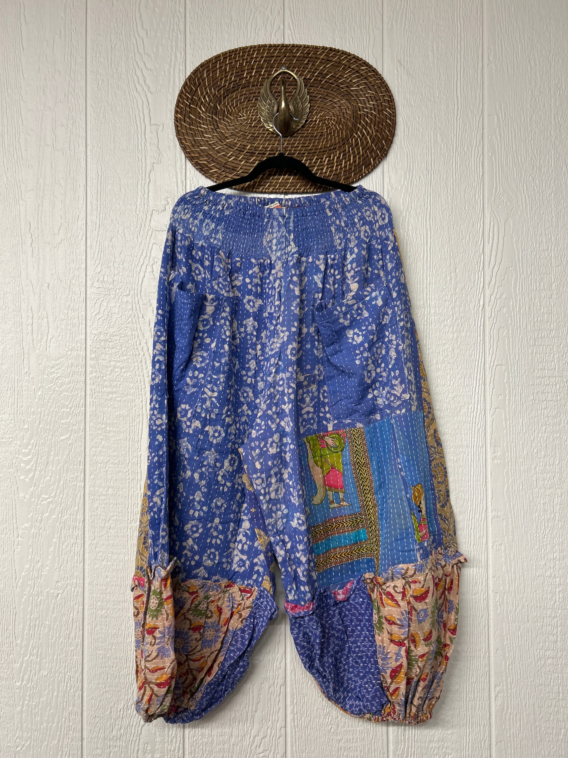 Crafted from our ultra lux kantha stitched vintage cotton sari these pants feature exterior slouchy pockets, a stretchy waistband and an elastic ankle opening. Dress these dream pants up or down to become the ultimate vibe!