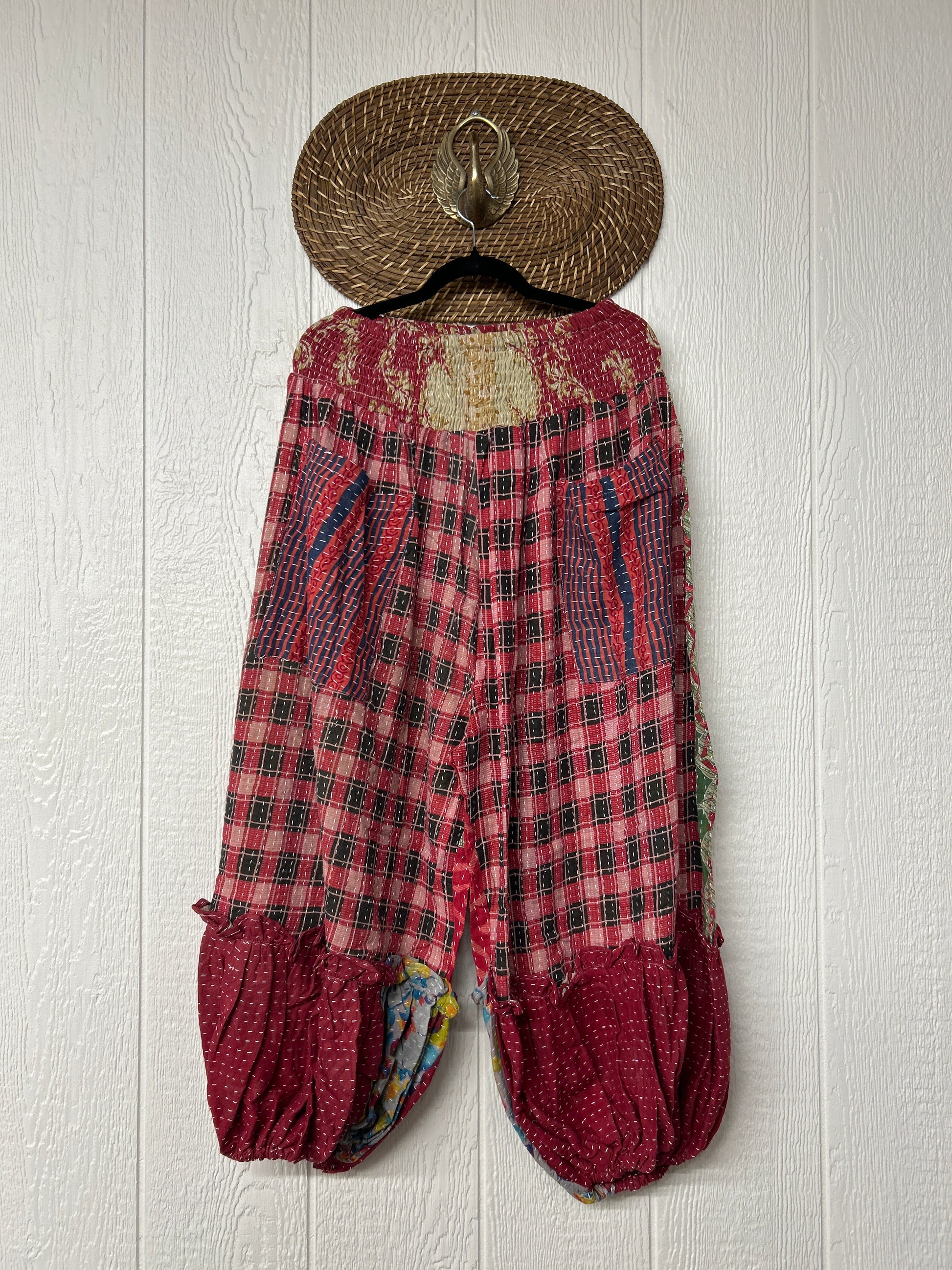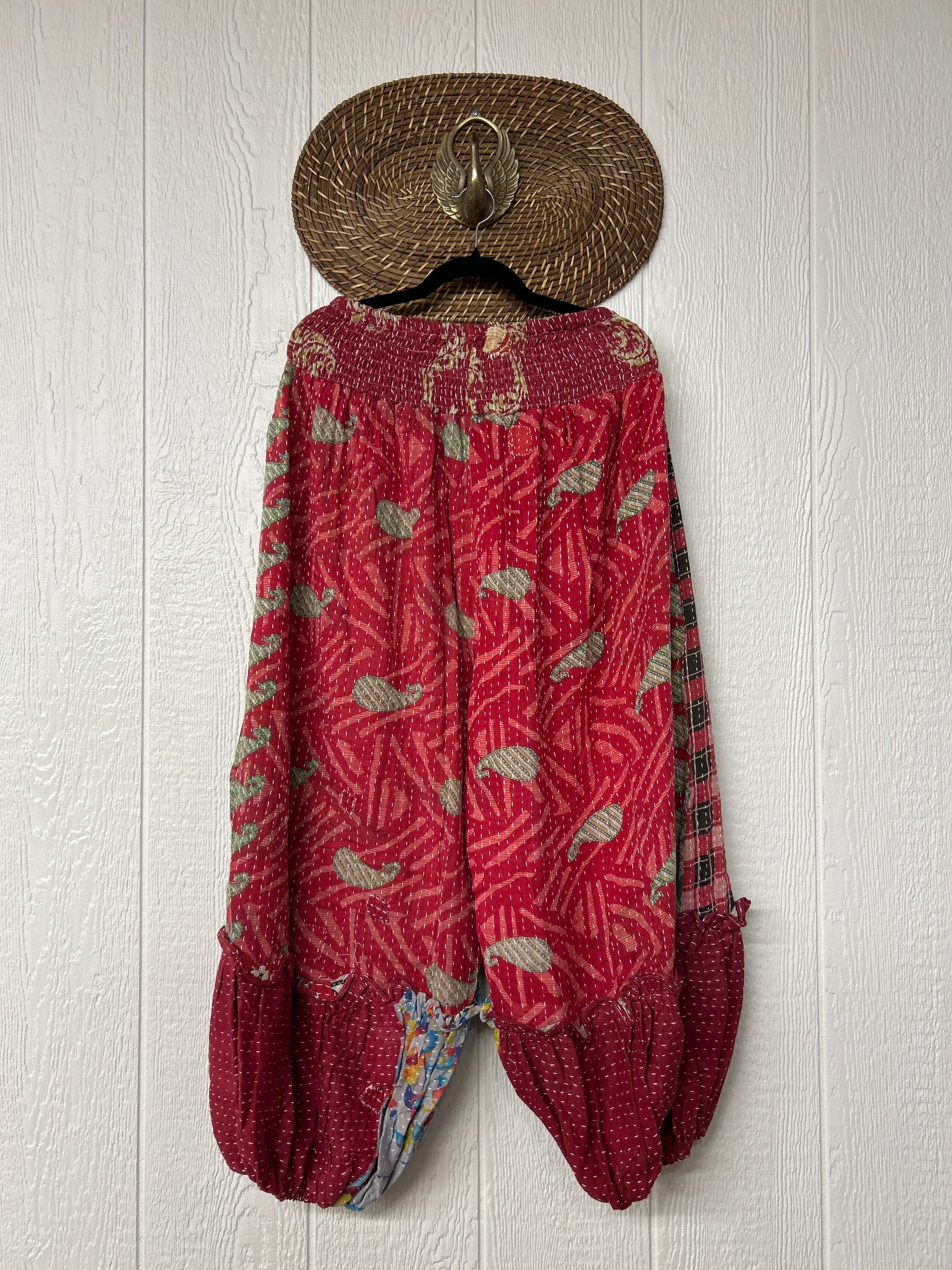 Crafted from our ultra lux kantha stitched vintage cotton sari these pants feature exterior slouchy pockets, a stretchy waistband and an elastic ankle opening. Dress these dream pants up or down to become the ultimate vibe!